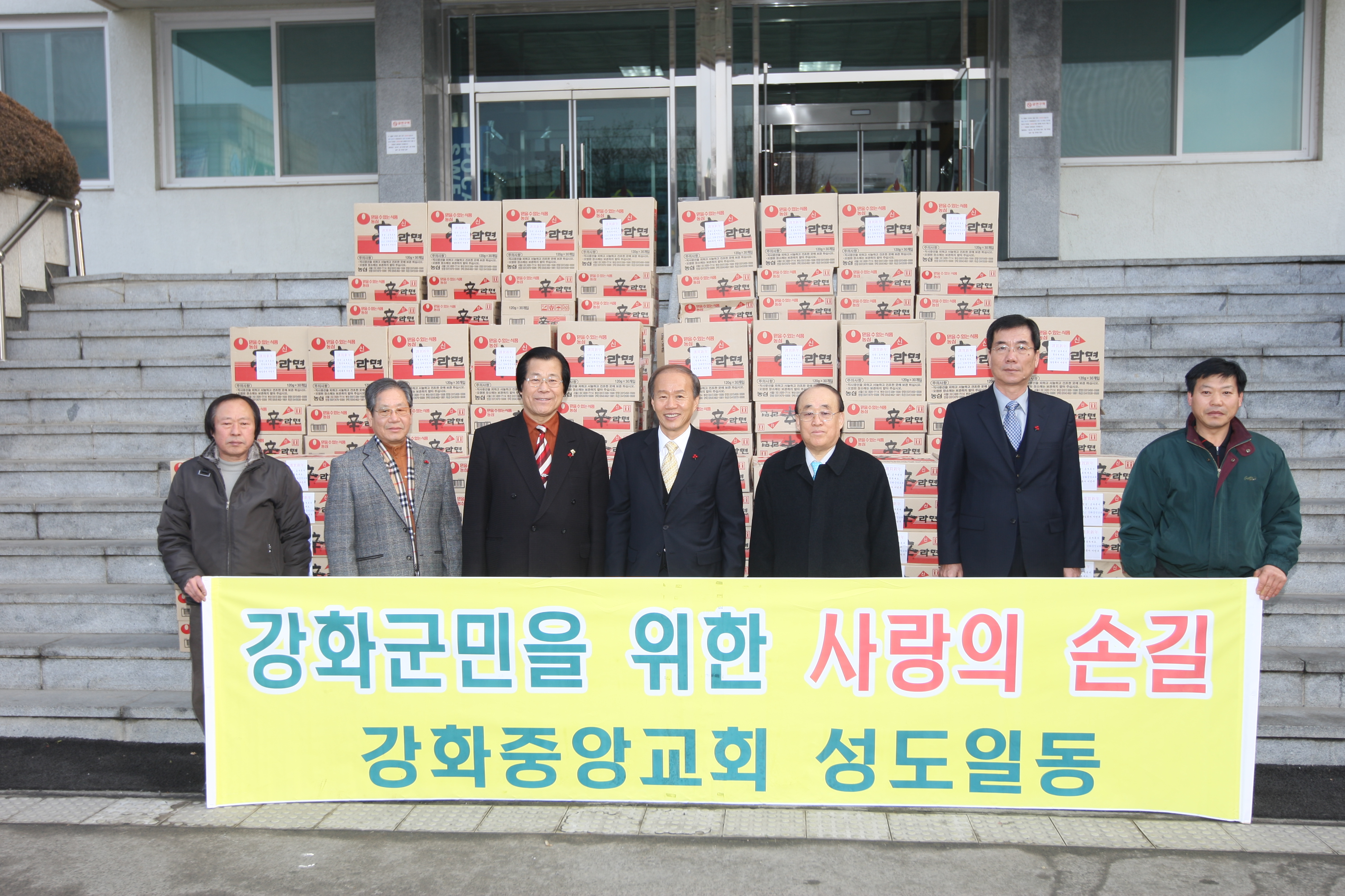 강화중앙교회 어려웃 이웃 위해 사랑의 라면 기탁