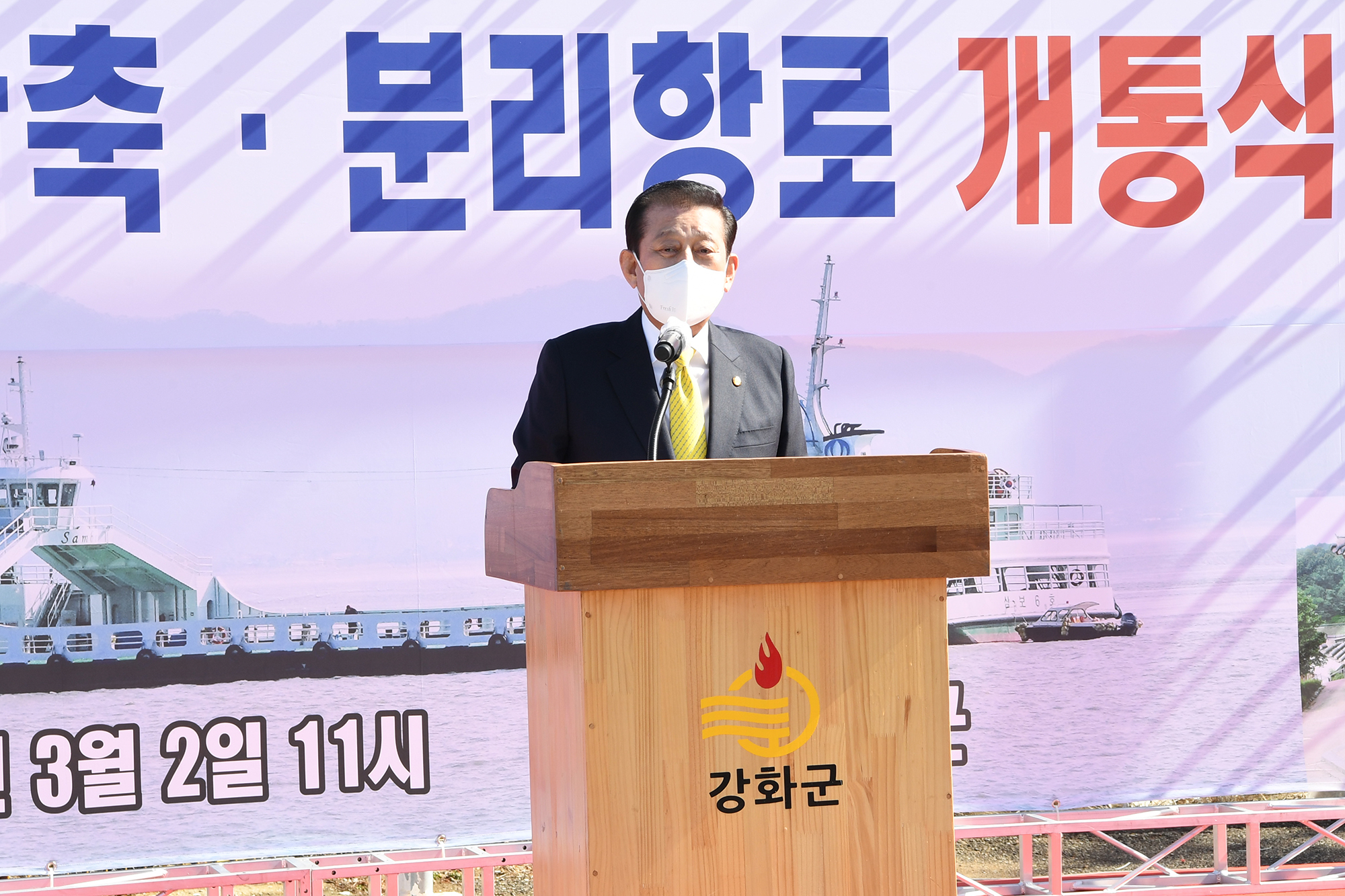 이날 행사에는 유천호 강화군수, 배준영 국회의원, 조택상 인천광역시 균형발전 정무부시장, 신득상 강화군의회 의장 및 군의원, 신희백 삼보해운 대표이사 등이 참석해 단축‧분리항로 개통을 축하했다.