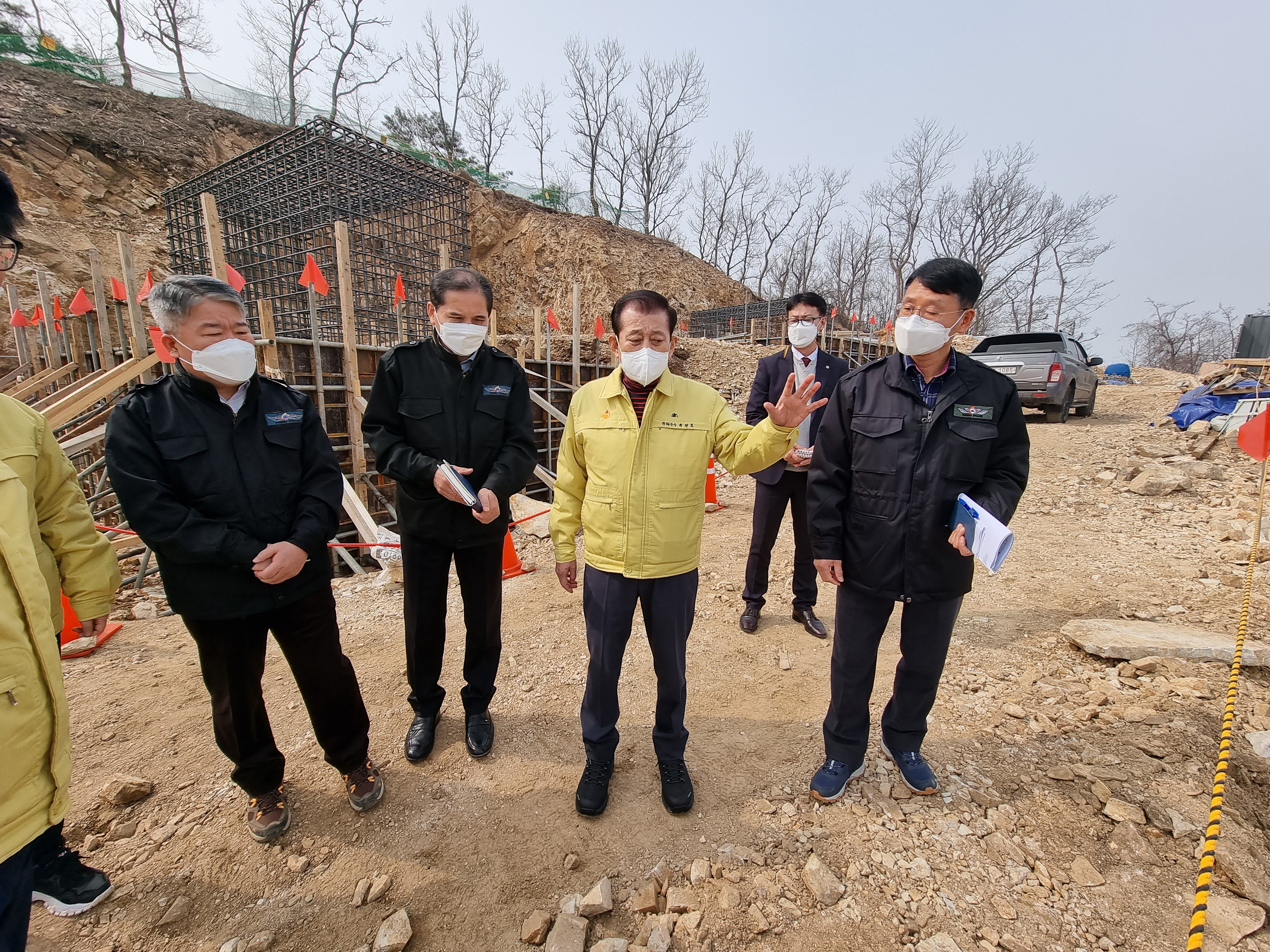 이날 유 군수는 군청 기획행정복지국장, 도시건설개발국장 등과 함께 교동 화개산관광자원화사업, 해안순환도로 4-1공구 사업 및 국궁장 조성 사업지를 방문했다.