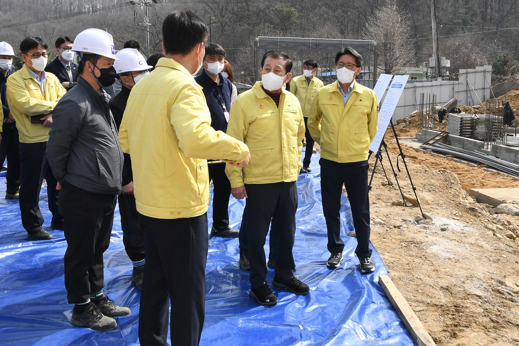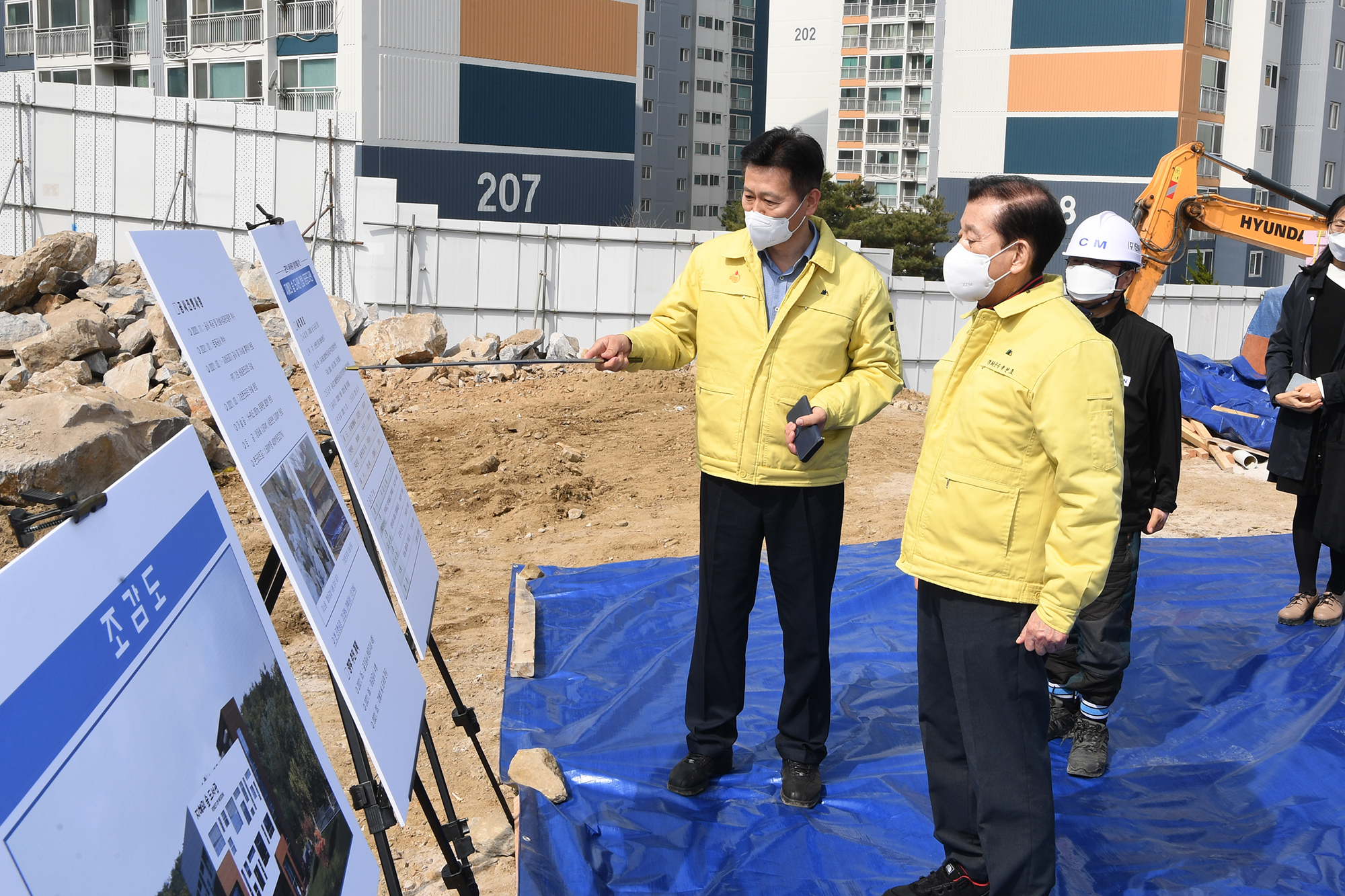 유 군수는 19일 군청 기획행정복지국장, 도시건설개발국장 등과 함께 지혜의 숲 도서관 건립 및 강화군복합커뮤니티센터 사업지를 방문해 공사진행 사항을 점검하고 관계자들을 격려했다.