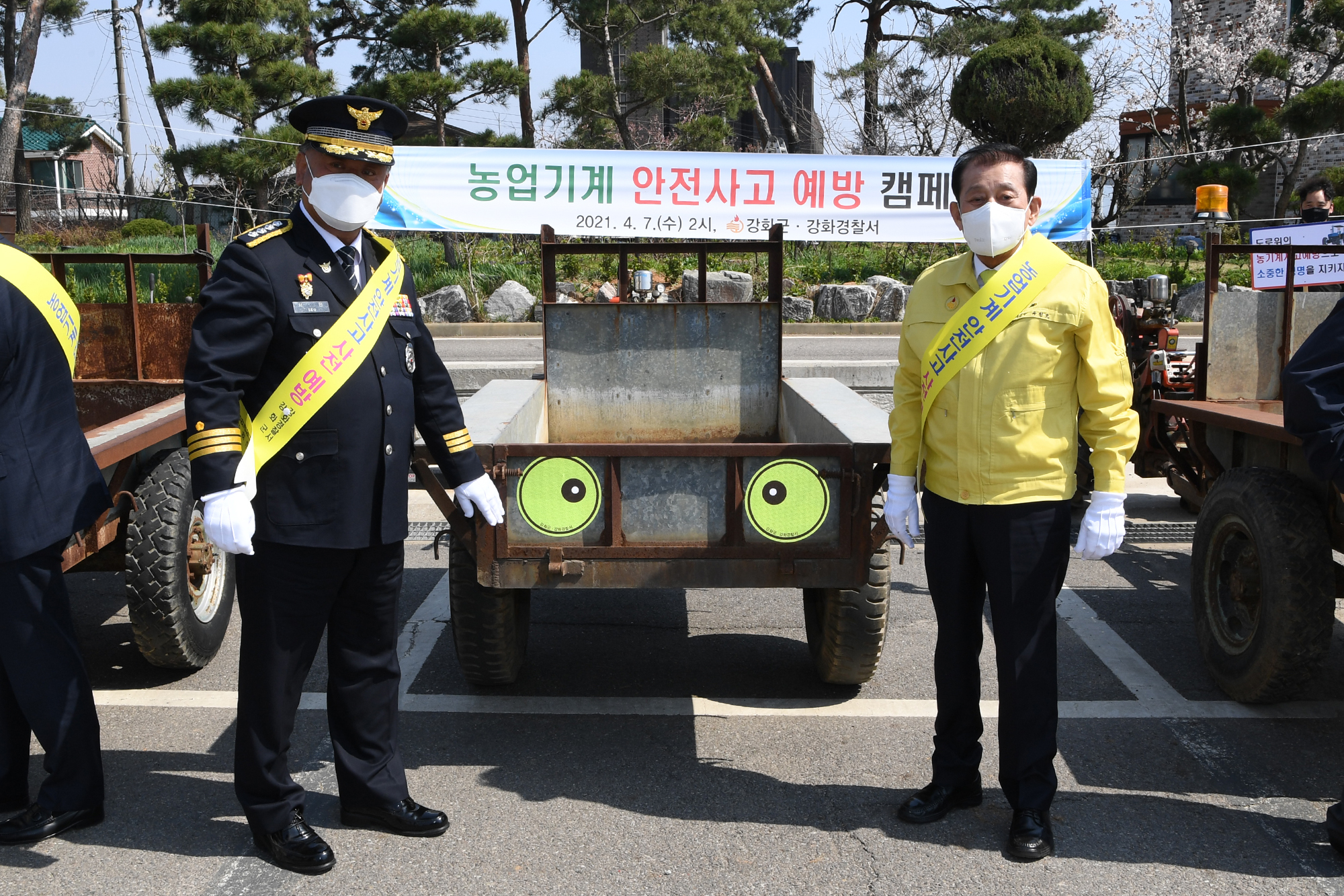 강화군(군수 유천호)은 강화경찰서(서장 서민)와 함께 7일 선원면사무소 광장에서 농업인의 농기계 사고를 예방하기 위한 농기계 안전스티커 부착 캠페인을 펼쳤다.
