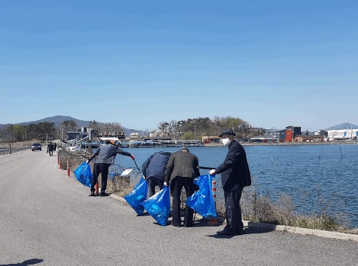 길상면 노인회, 봄맞이 황산도 일원 환경정화 활동 실시