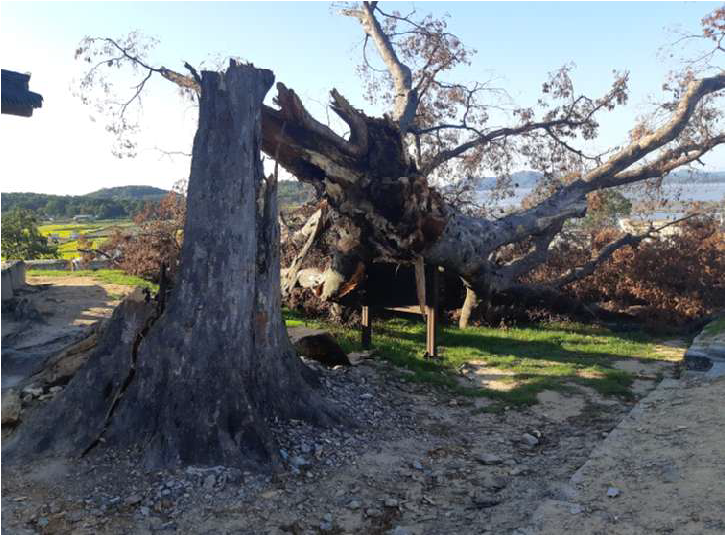 태풍 피해 보호수 예술작품으로 새생명, 그루터기엔 그림자 재현