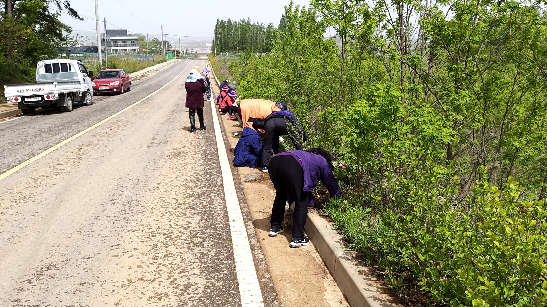 교동면 생활개선회, 화개산 입구에서 꽃길 제초작업