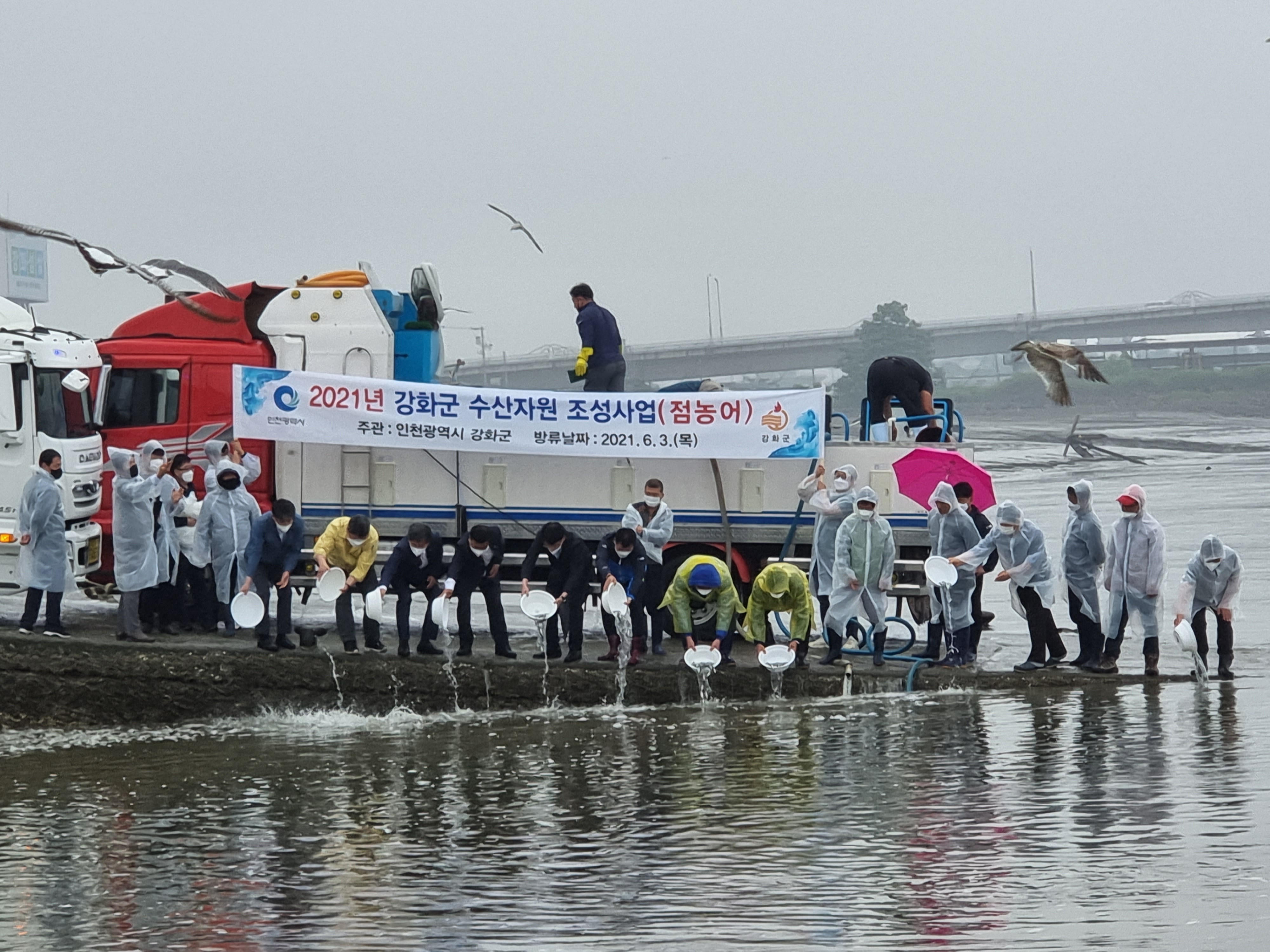 이날 코로나19 확산방지 및 사회적 거리두기 실천을 위해 군 관계자와 경인북부수협, 지역 어촌계장 및 어업인 등 10여 명만 방류행사에 참여했다.