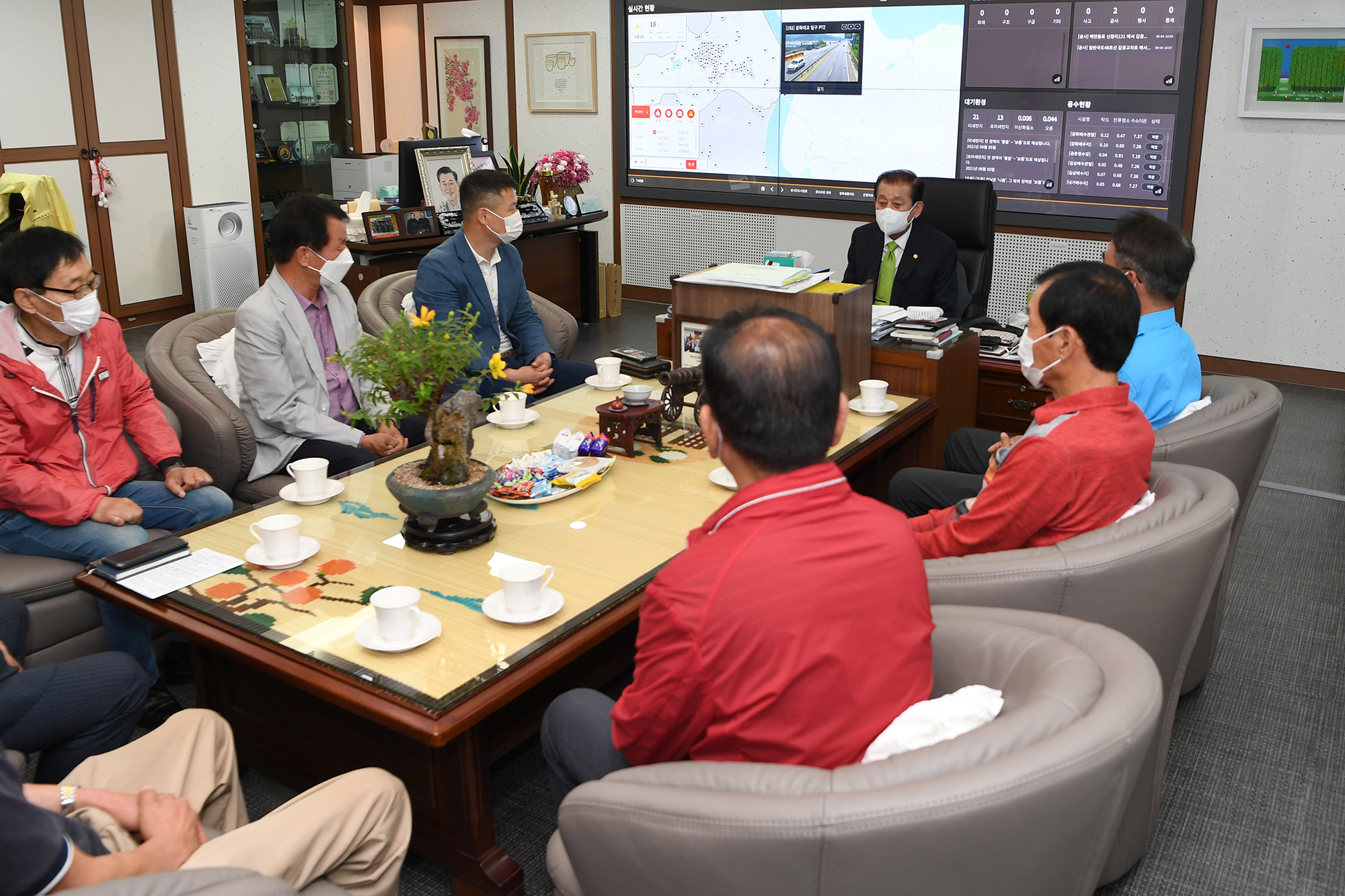 이날 간담회에서 유천호 군수는 75세 이상 원활한 코로나19 백신 접종을 위해 어르신들의 안전한 이송에 힘써 주신 전세버스 관계자를 격려했다.