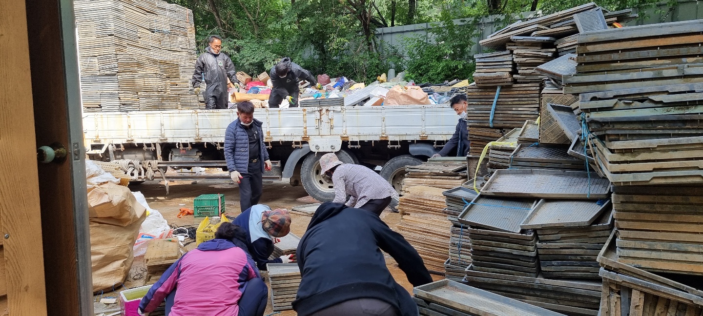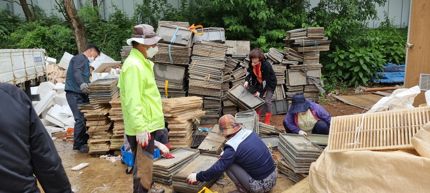 교동면 이장단, 방치된 모판 수거에 앞장