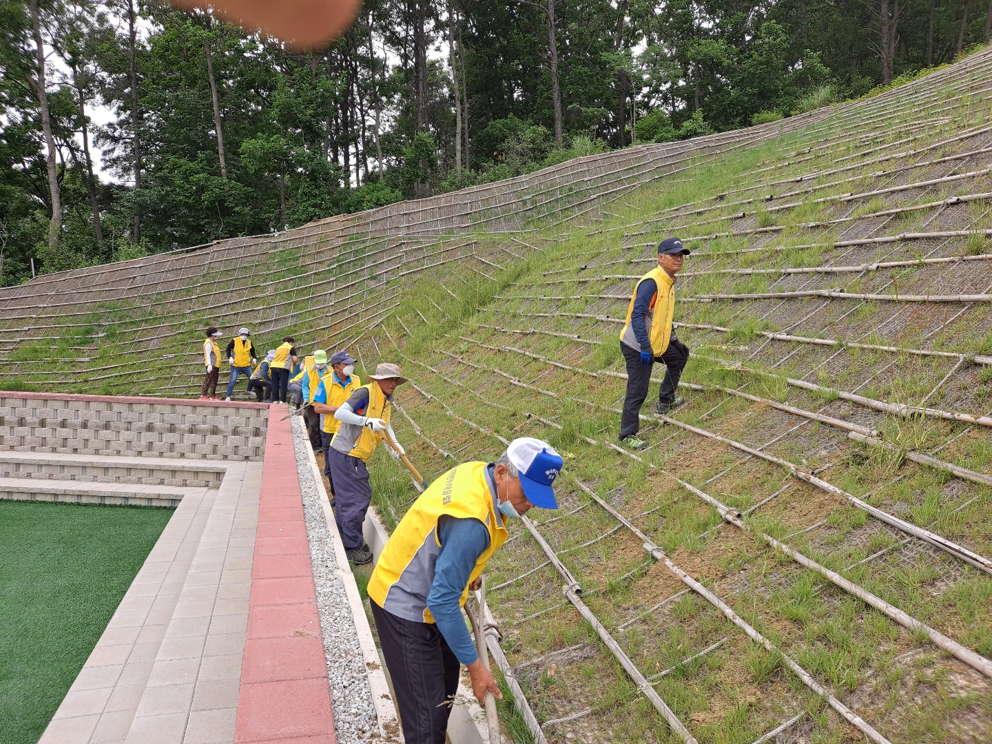 이날 참여한 회원 20여 명은 장마철 대비 골프장 주변 배수로에 쌓인 흙을 삽으로 준설하여 산에서 내려오는 물이 잘 배수되도록 정비했다. 또한 골프장 주변의 잡초를 제거하여 그라운드 골프장을 찾는 이들이 쾌적한 환경에서 불편 없이 골프장을 이용하도록 솔선하여 환경 정비 봉사에 앞장섰다.