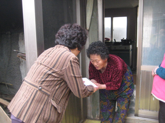 (사진설명 : 동아리 회원들이 불우이웃을 직접방문 전달장면)