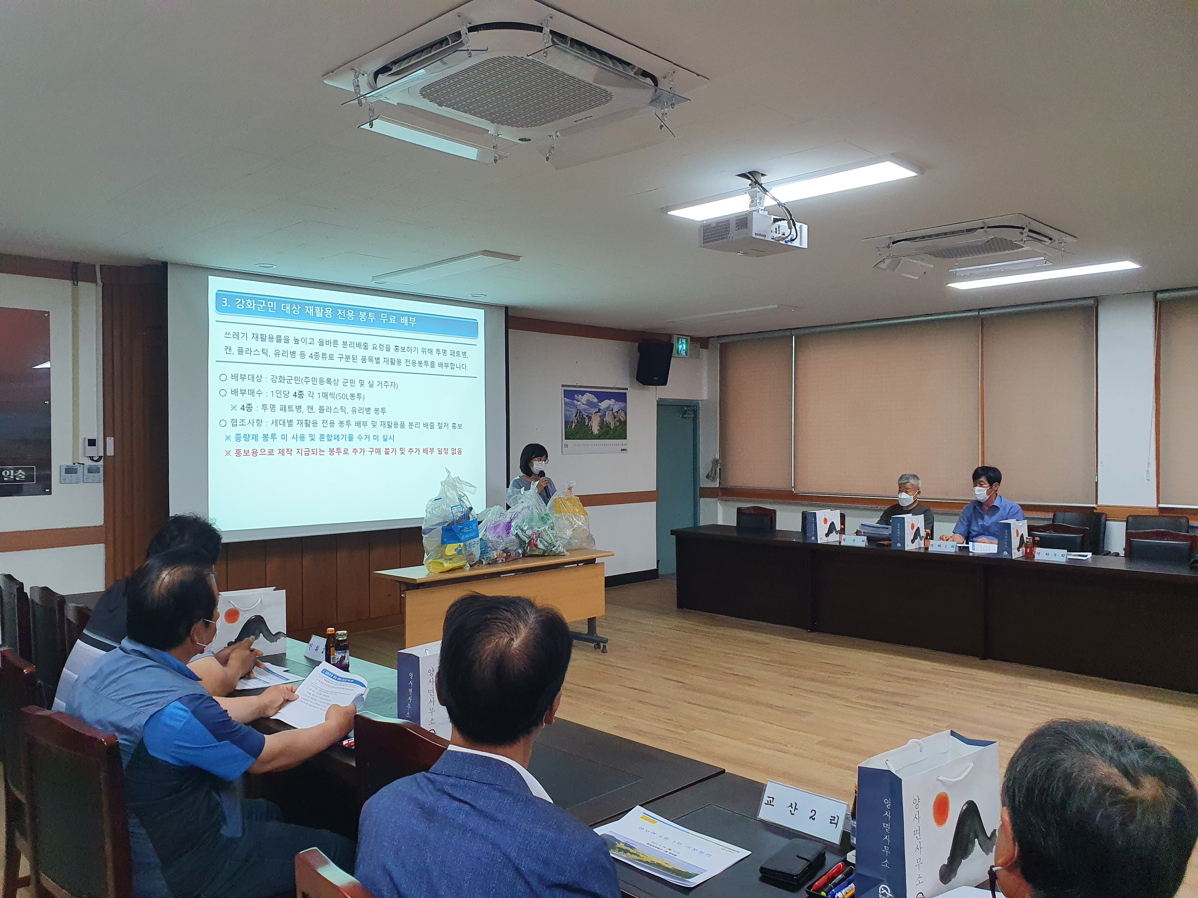 이번 교육은 쓰레기 재활용률을 높이기 위해 강화군이 품목별 재활용 전용봉투를 제작해 군민에게 무료로 배부하는 사업의 효과를 극대화하기 마련됐다. 이날 이명자 면장은 재활용이 가능한 품목과 불가능한 품목을 자세하게 설명하면서 배출실태 점검과 올바른 배출방법에 대해 자세히 설명했다.