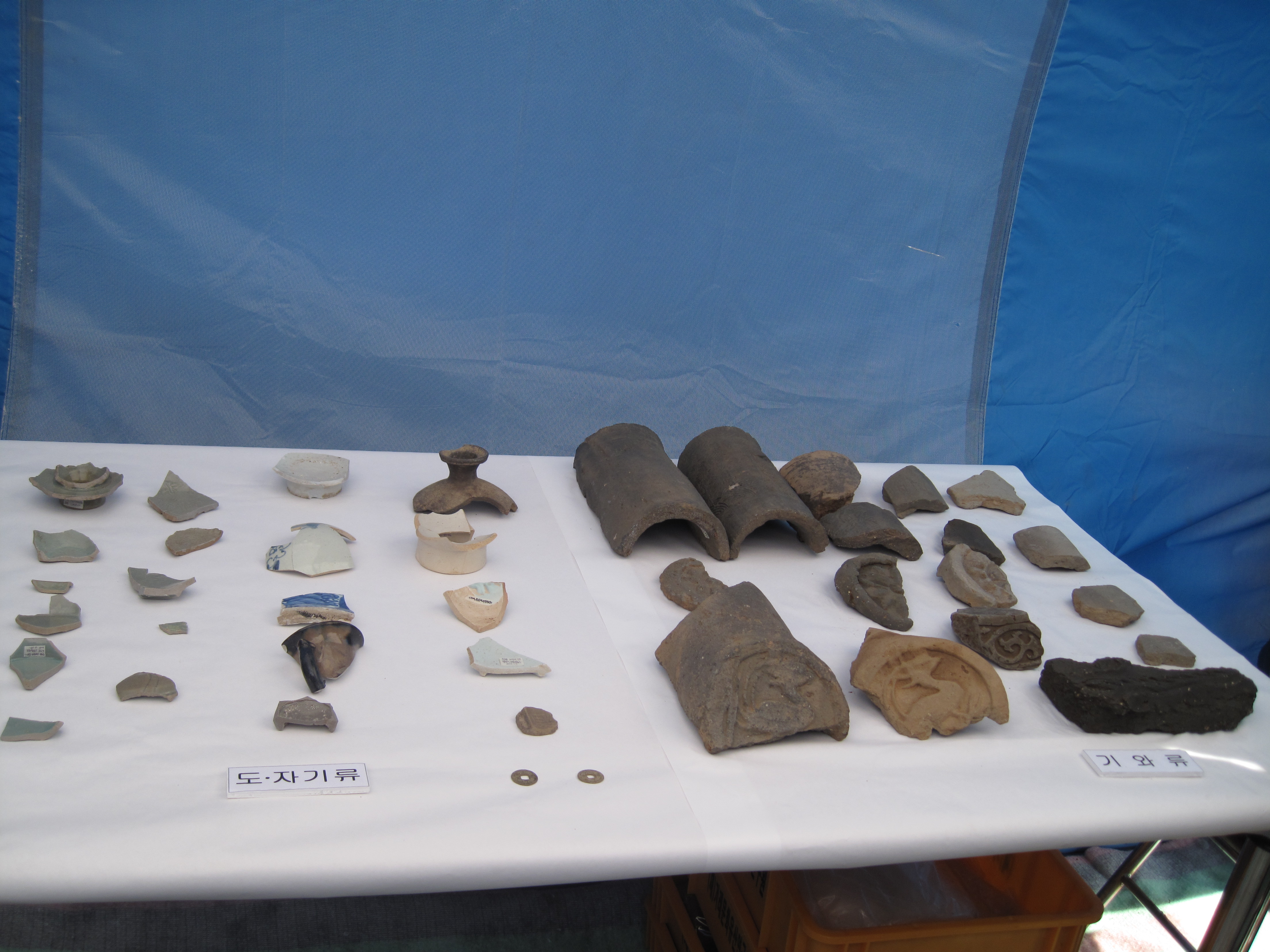 이날 발굴된 유구는 고려시대 궁궐터에서 주로 발견되는 당초무늬 수막쇄를 비롯해 고려청자편,어골문기와 와 조선백자편등으로 100여점이 공개됐다.