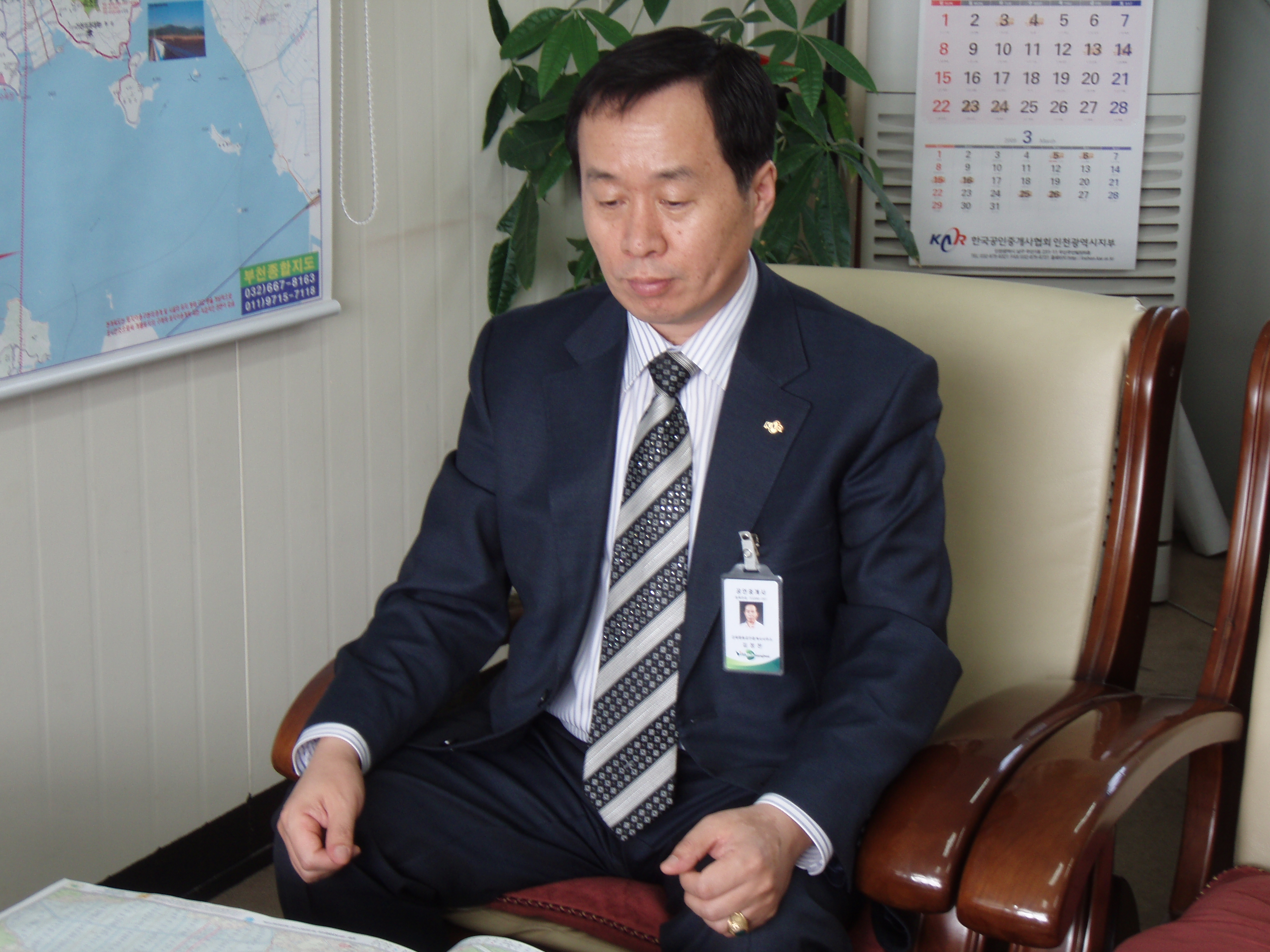 (사진은 한국공인중개사협회 강화군 지회장 김정찬씨가 신분증을 시범패용하고 있다)
