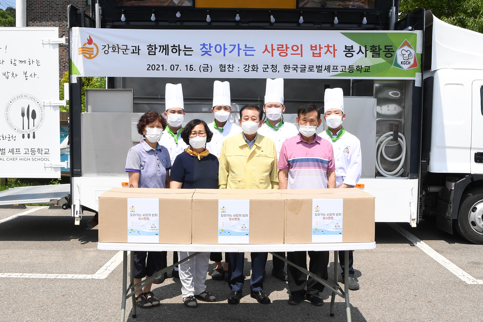 유천호 강화군수는 16일 한국글로벌셰프고등학교 학생들과 함께 ‘사랑의 밥차 행사’를 가졌다.