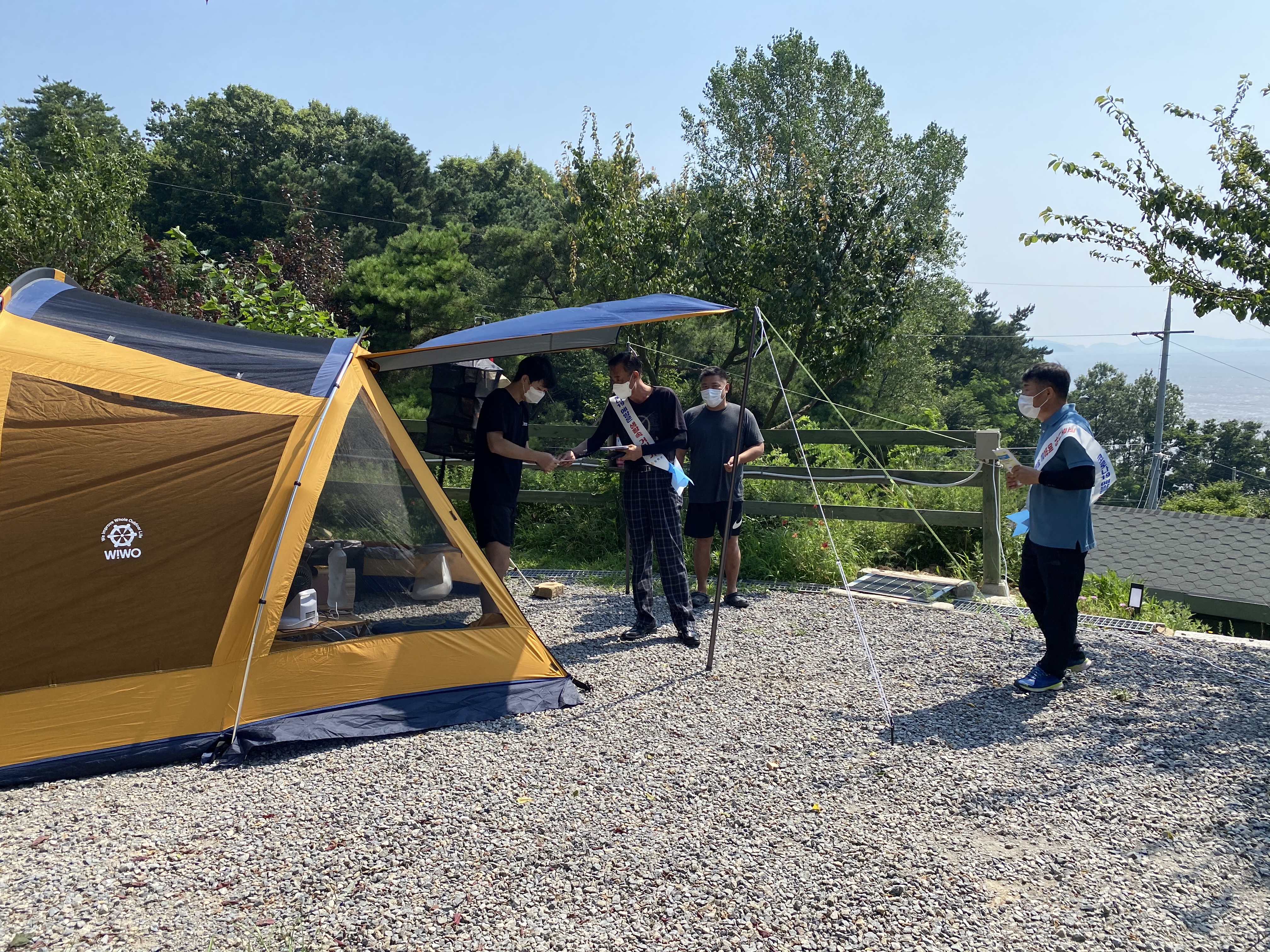 이날 캠페인에서 이장단은 홍보 효과를 극대화하기 위해 방문객이 많이 찾는 야영장, 카페, 주요 관광지에서 손소독제와 마스크를 나눴다.