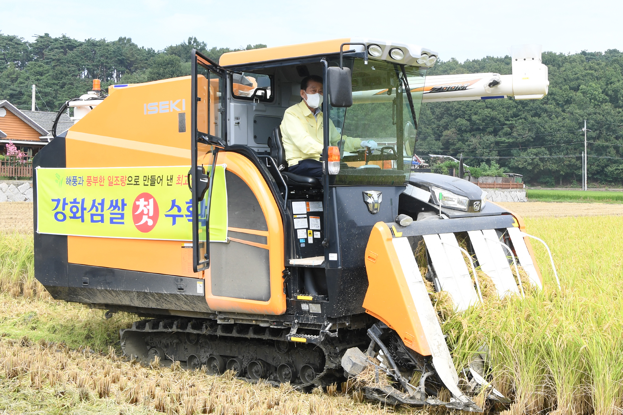 강화군(군수 유천호)은 30일 강화읍 용정리 벌판에 위치한 김학빈 농가 에서 ‘강화섬쌀’ 첫 벼베기를 했다.