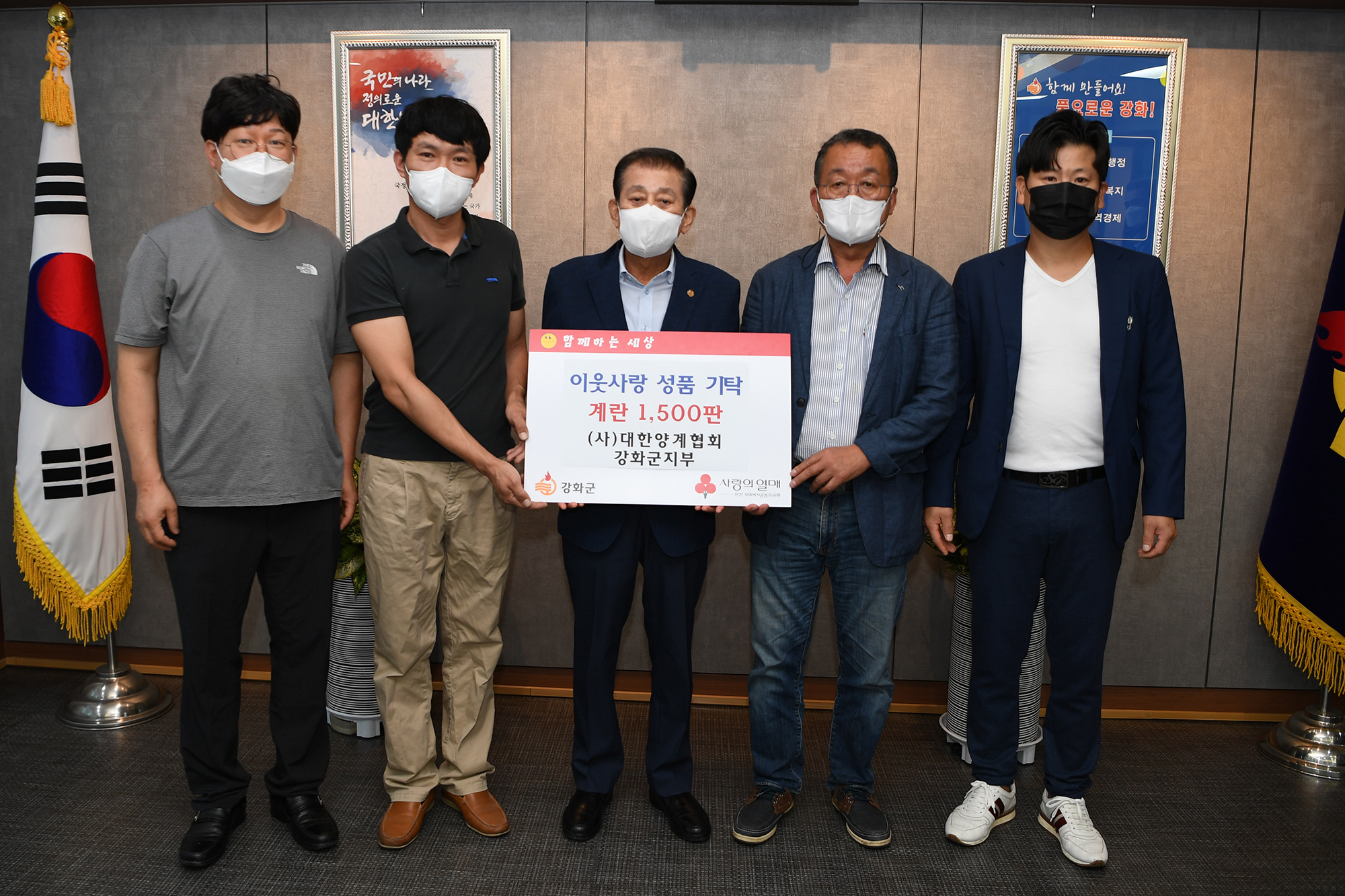 강화농업드론연합회(회장 고봉환)는 지난 13일 성금 500만 원을 기탁했다. 한국농어촌공사 강화옹진지사(지사장 이수근)에서 성금 500만 원, (사)대한양계협회 강화군지부(지부당 이태종)에서 계란 1,500박스, 농업회사법인 ㈜비젼푸드(대표 김태연)에서 곰탕 310세트, 강화군게이트볼자원봉사 단체(회장 서병화)에서 쌀 20포대를 지난 14일 각각 기탁했다.