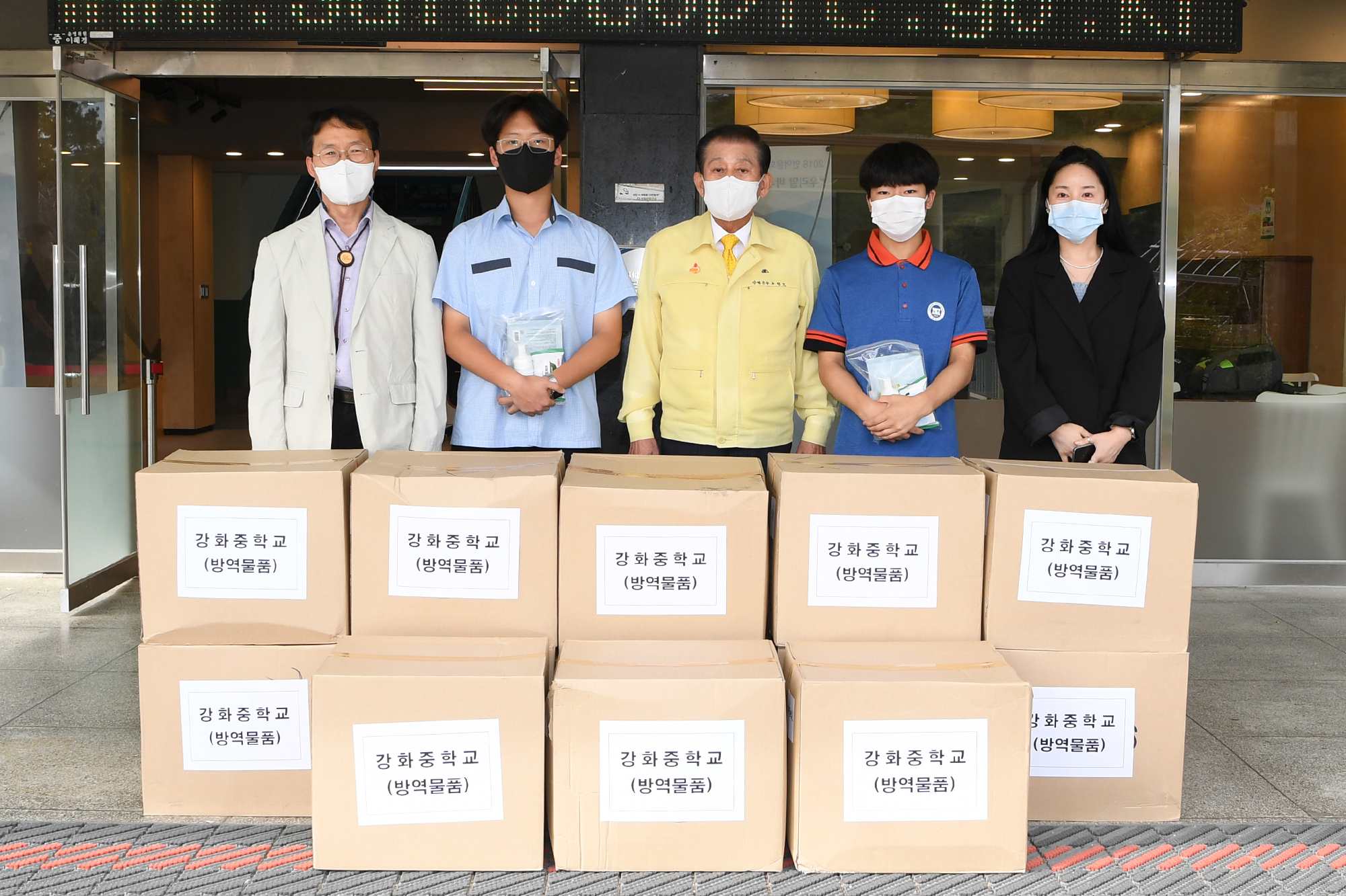 유천호 군수는 지난 16일 강화중학교, 강화고등학교를 방문해 학교 내 방역 준비에 대한 설명을 듣고 건의 사항을 수렴했다. 이어, 긴급 상황 발생 시 학교와의 협조 체계를 점검하고, 방역물품 꾸러미를 전달했다.