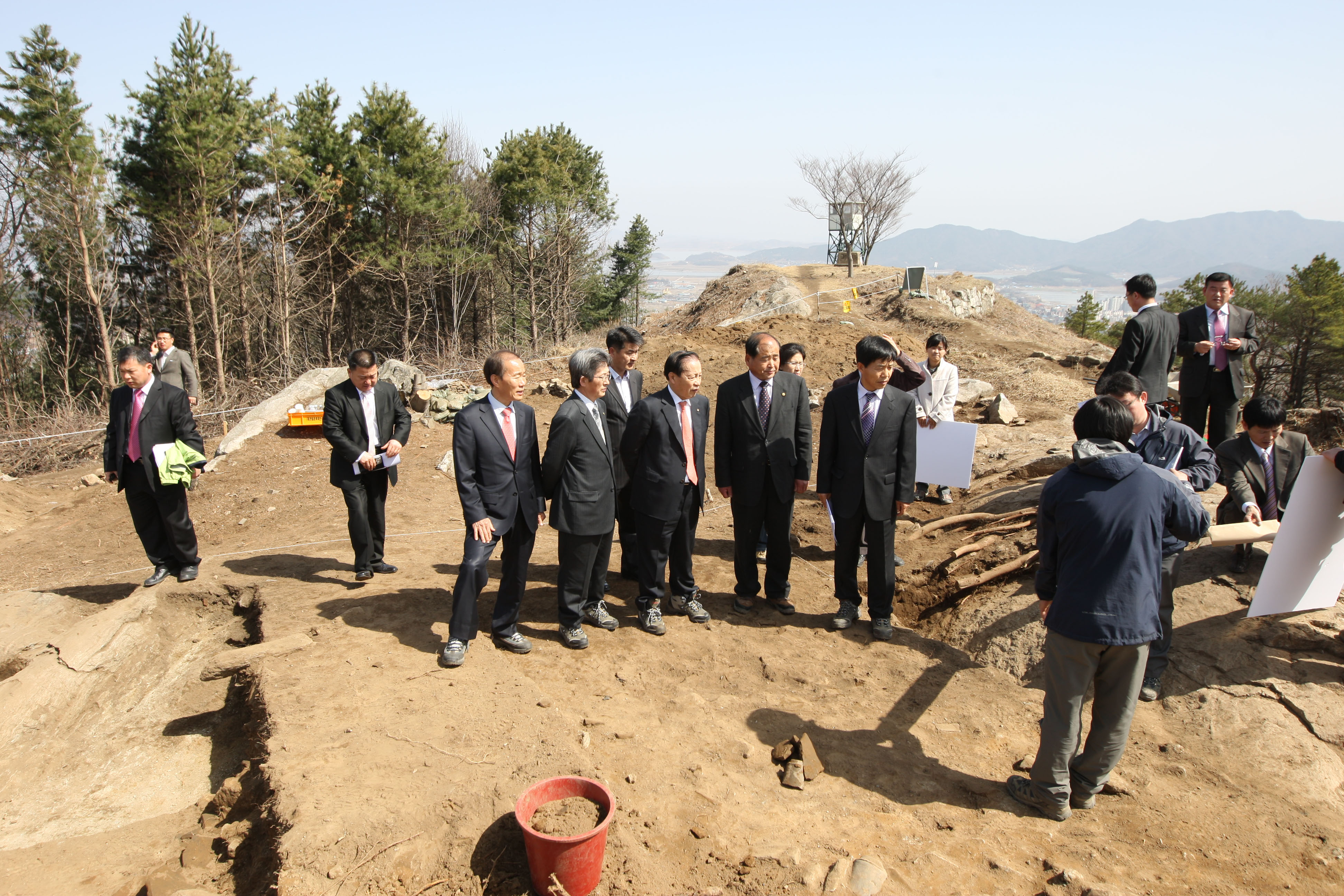 (사진 강화산성 남장대지 발굴조사현장을 방문한 이건무청장 일행들)