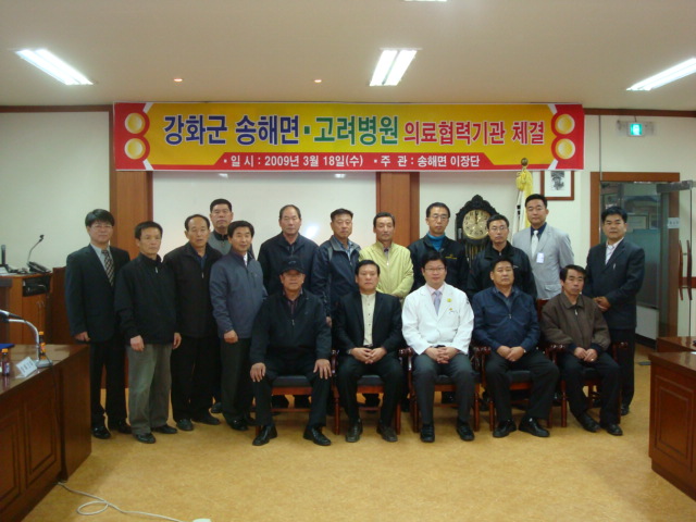 강화군 송해면은 지난 18일 송해면사무소 회의실에서 송해면 이장단과 김포시 고려병원과의 협력의료기관 협정서를 체결했다고 밝혔다.