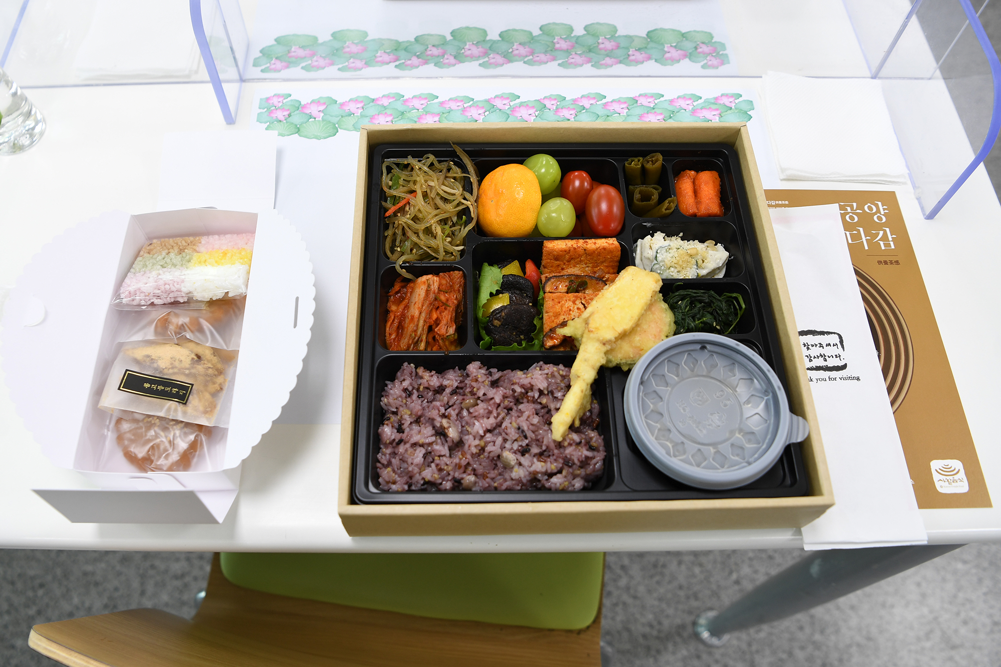 도시락은 입맛을 돋우고 기력을 회복하는데 도움이 되는 신선한 재료로 만들어졌으며, 아욱국, 더덕·취나물 무침, 연근 잣무침, 표고버섯 조림, 인삼·단호박튀김 등으로 구성됐다.