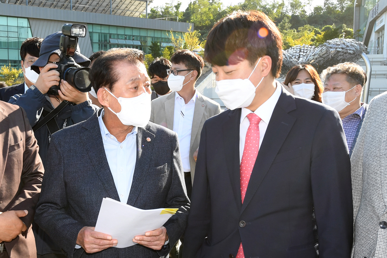 유천호 강화군수는 지난 14일 ‘영종~강화 평화도로’ 1공구 건설현장을 찾은 국민의 힘 이준석 대표를 만나 강화군 현안사업을 설명하고 관심과 지원을 요청했다.