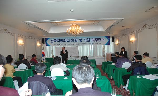 처음 실시된 이번 의원 및 직원 연수교육은 의정활동에 필요한 전문지식 습득과 지방의회의 효율적인 발전방향을 모색키 위한 것으로,연수교육 1일차는 한국산업연수원 지방자치연구소장인 서우선 박사의 지방행정개편 및 행정구역 통폐합에 대한 대응전략, 지자체 민간이전경비 운영실태와 정책대응방안, 추경심의 및 결산심사 기법 등을 강의 했다.