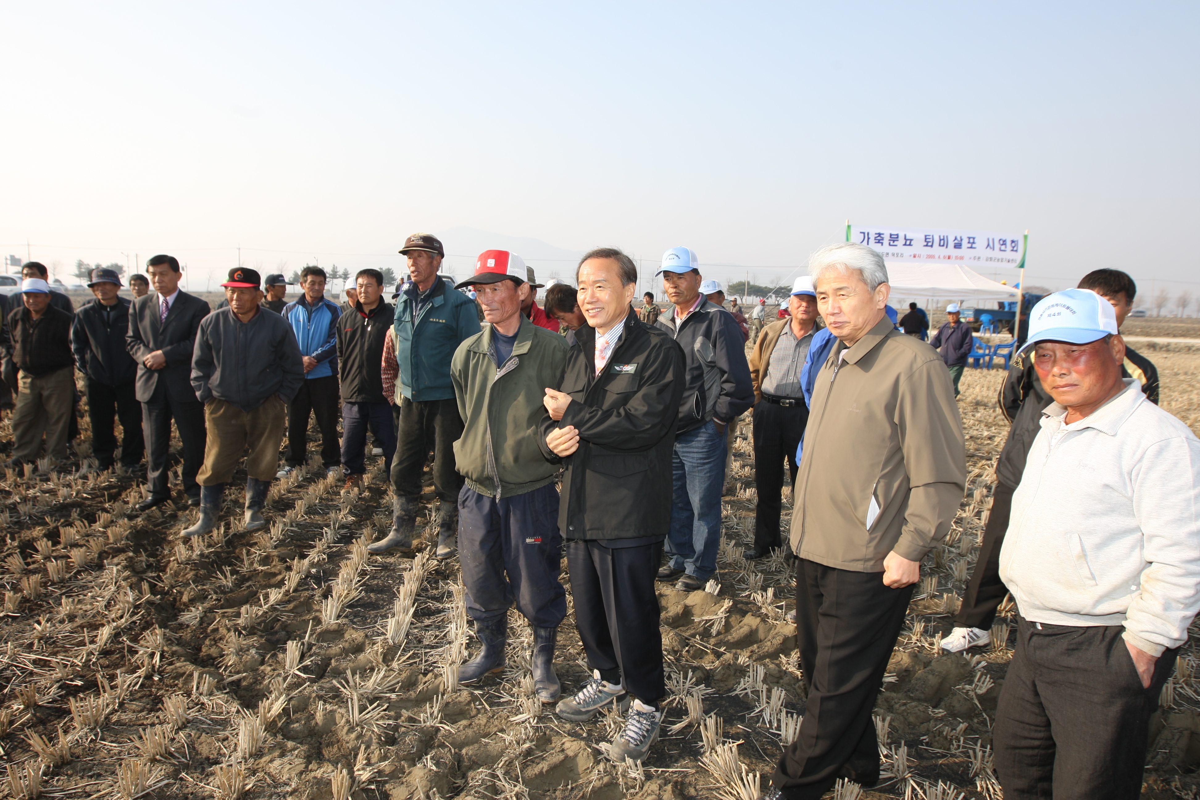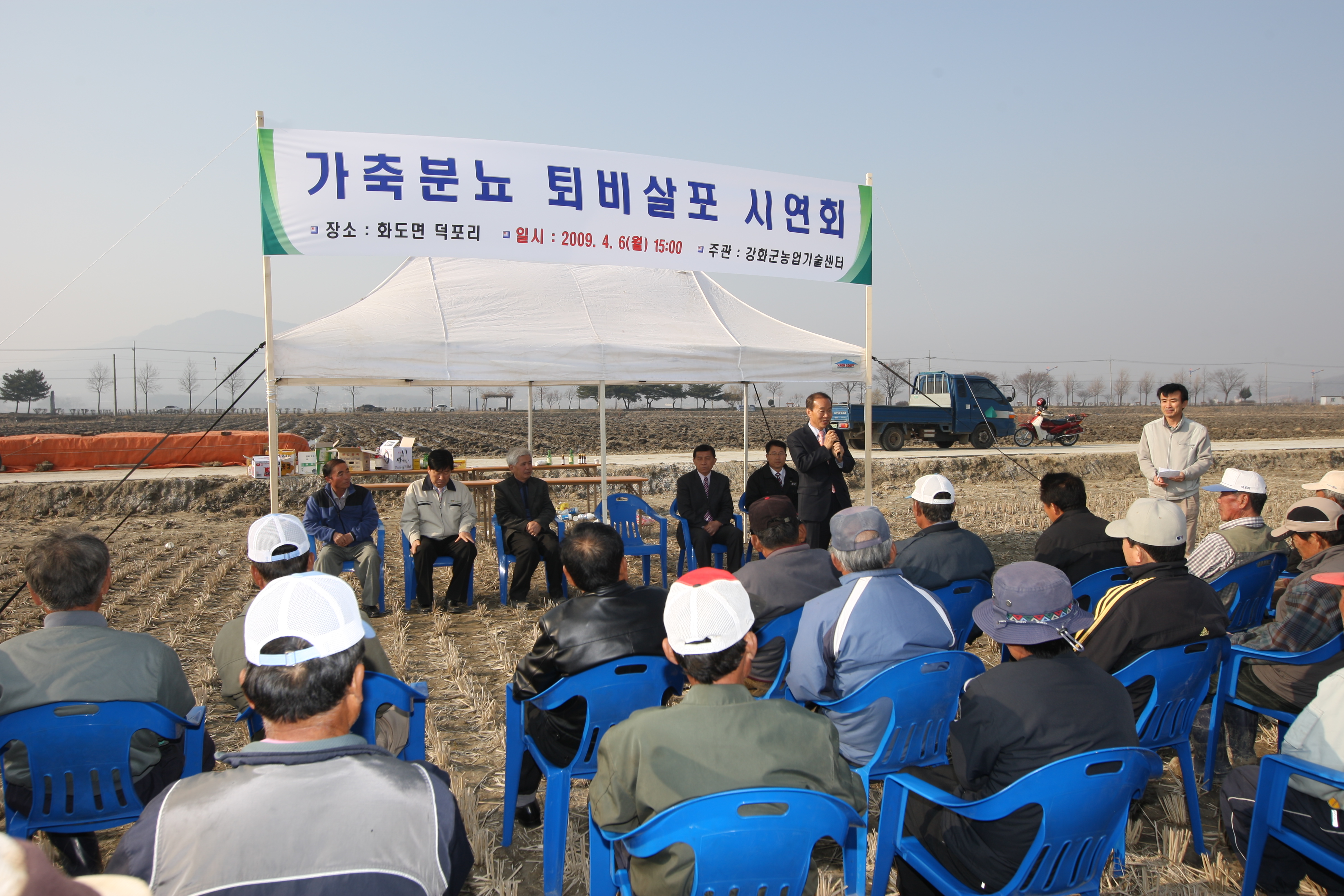 강화군(군수 안덕수)은 지난 6일 화도면 덕포리 들녘에서 안덕수 군수를 비롯한 화도면 친환경 쌀 작목회 회원과 공무원 등 60여명이 참석한 가운데 “가축분뇨 퇴비 살포 시연회”를 개최했다.