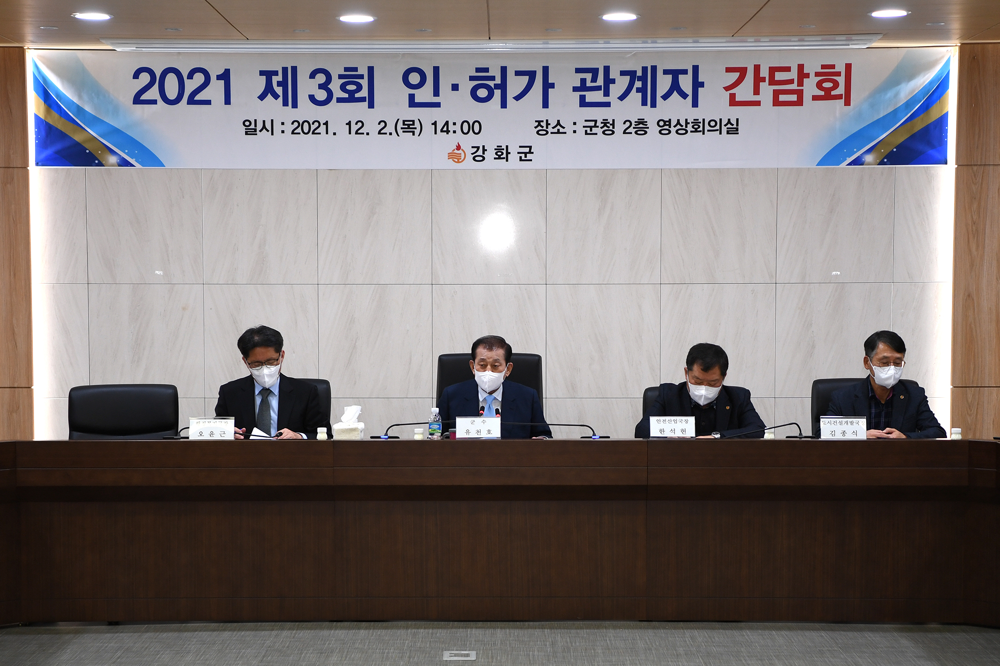 강화군은 지난 2일 군청 영상회의실에서 신속하고 공정한 인ㆍ허가 민원업무 처리 개선을 위한 ‘인허가 관계자 간담회’를 개최했다.