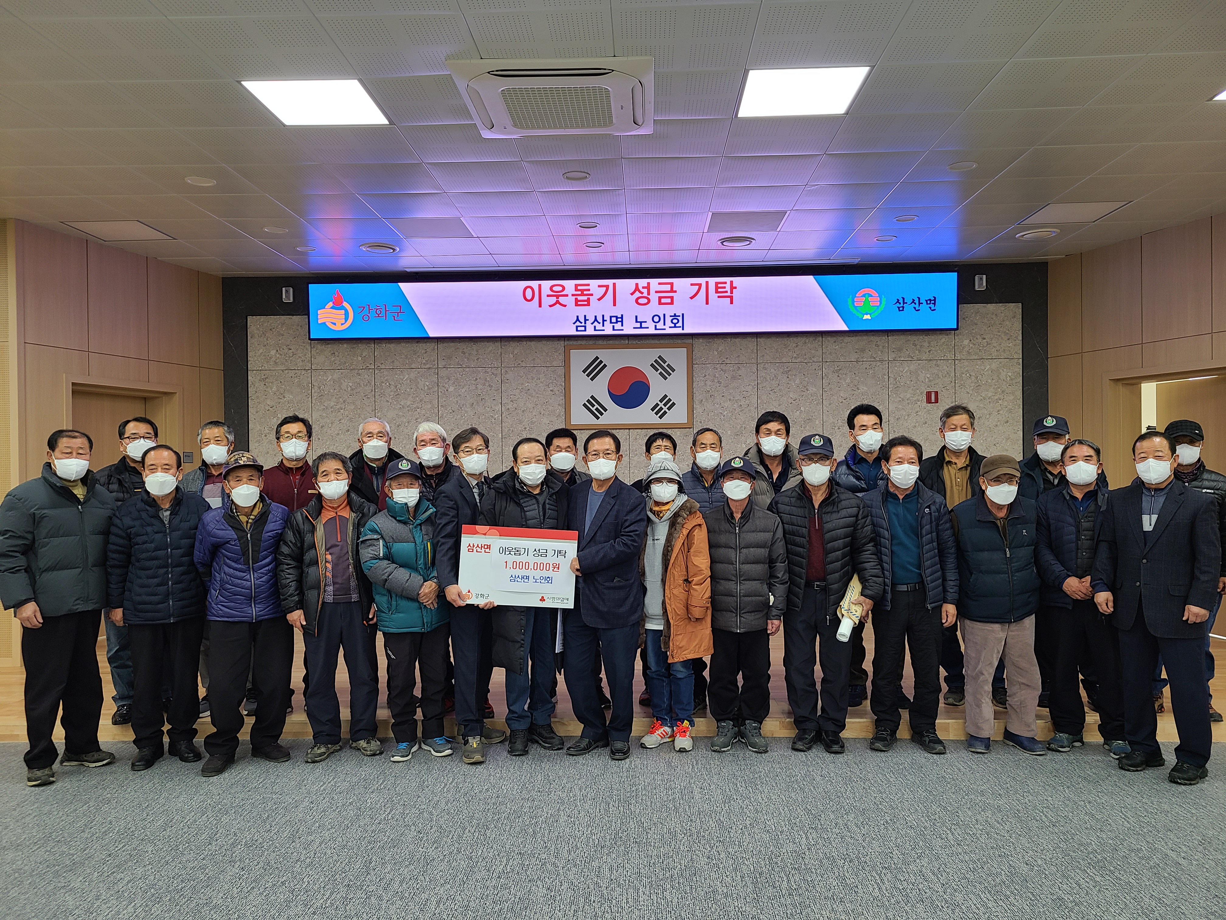 삼산면 노인회(회장 김광석)는 지난 16일 어려운 이웃을 위해 써달라며 성금 100만원을 면사무소에 기탁했다.