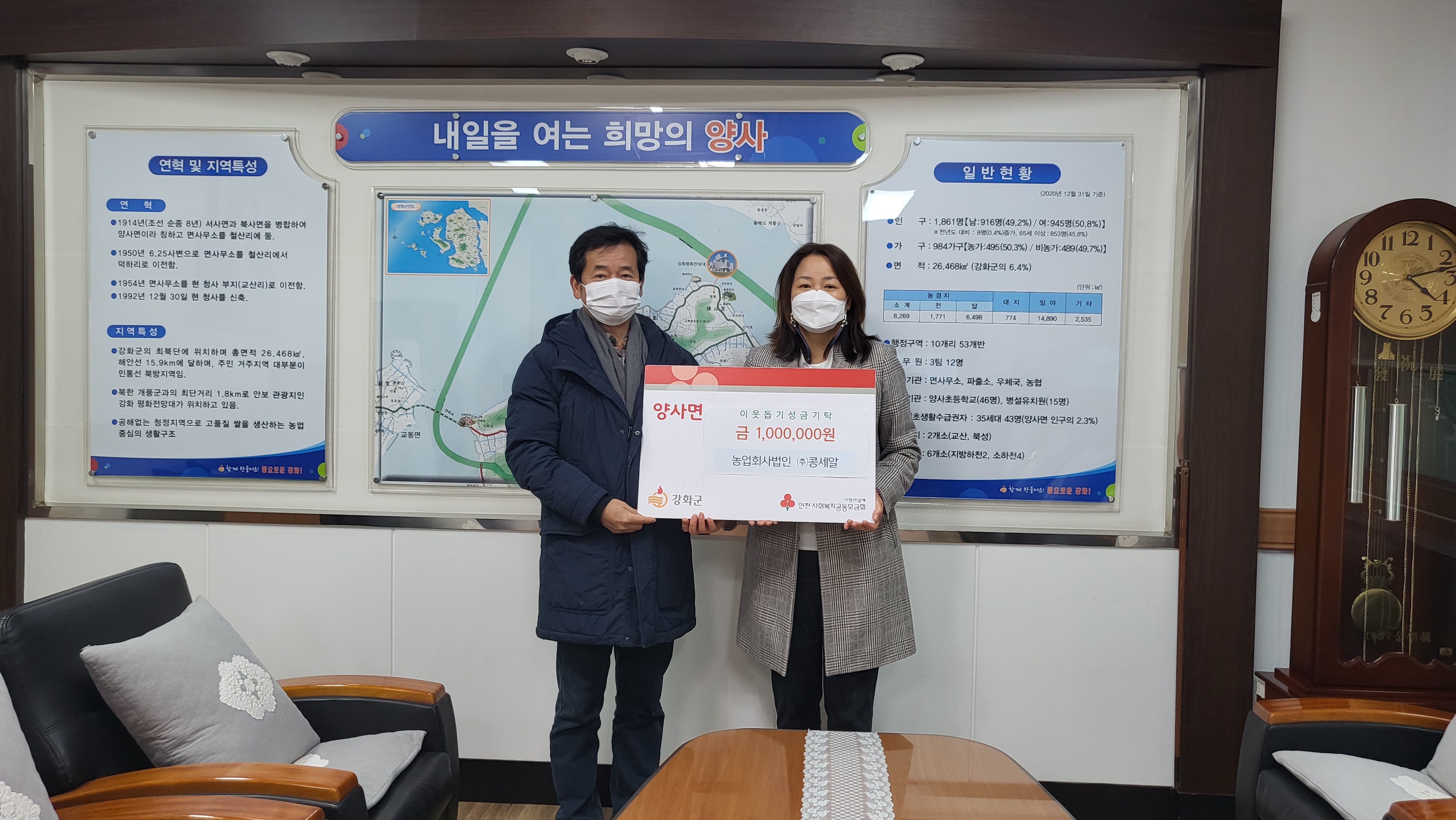 강화군 양사면에서는 연말을 맞이하여 관내 기업, 단체 등에서 소외된 이웃을 위한 성금과 성품 기탁이 줄을 잇고 있다고 전했다.