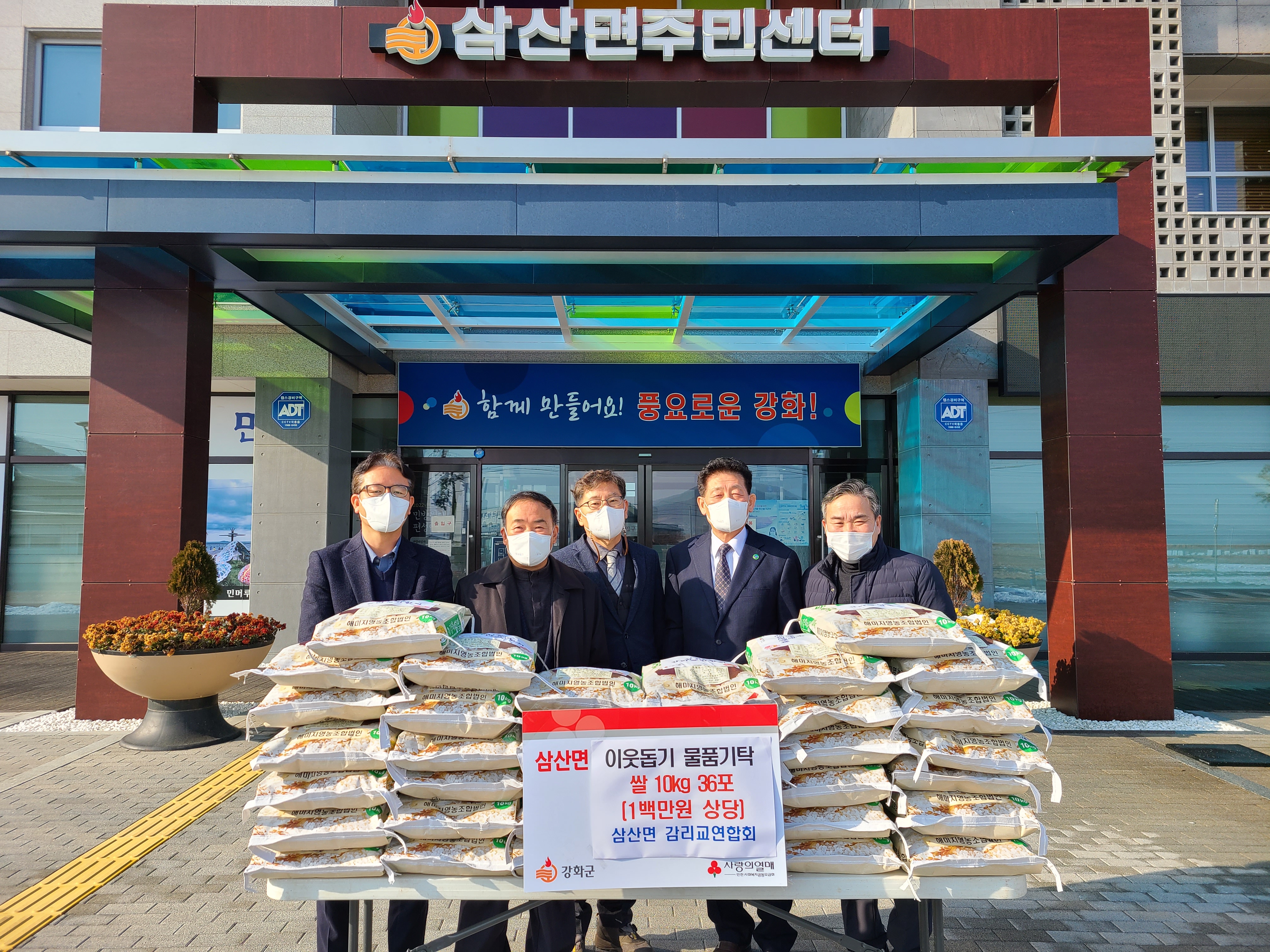 강화군 삼산면 감리교 연합회(회장 황효성)는 지난 20일 면사무소에 어려운 이웃을 위한 백미 10kg 36포(100만 원 상당)를 기탁했다.