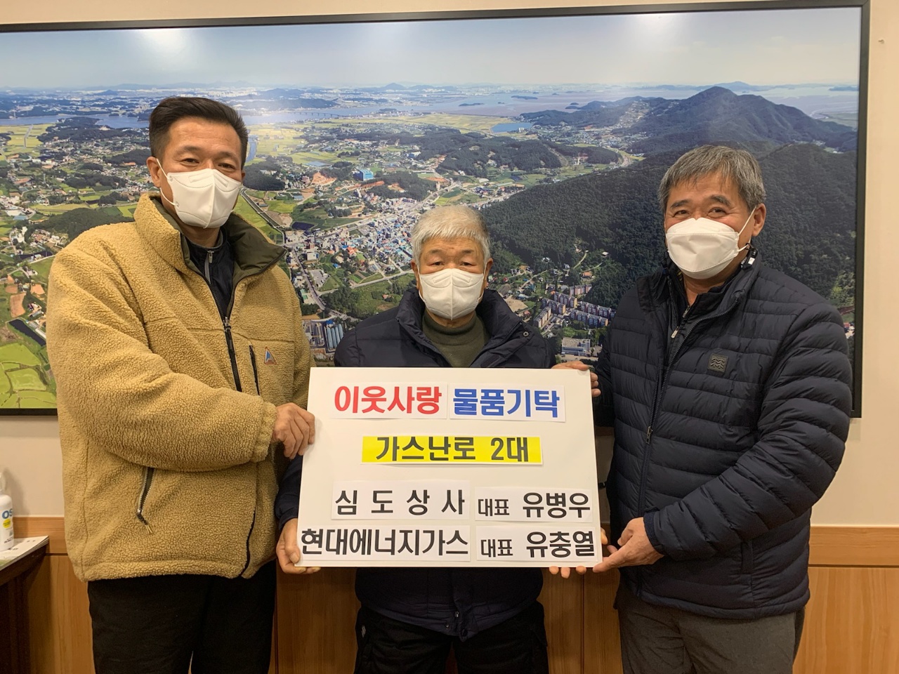 강화군 길상면 심도상사(대표 유병우)와 현대에너지가스(대표 유충열)는 지난 21일 면사무소를 함께 방문해 가스난로 2대를 기탁했다.