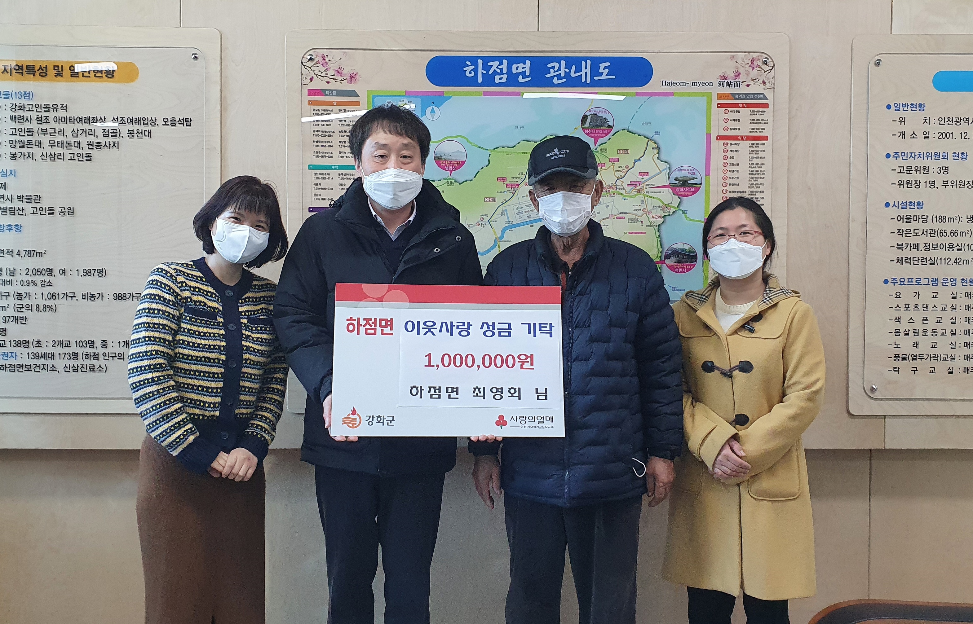 강화군 하점면에 거주하는 최영회 씨는 지난 20일 관내 어려운 이웃을 위해 사용해 달라며 성금 100만 원을 기탁했다.