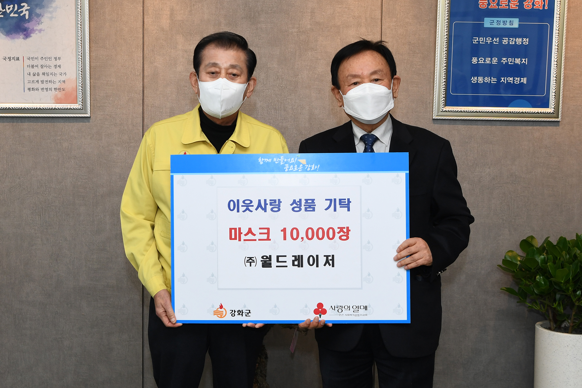 서전전기 5백만 원, 옥림순무작목반 김치 100통, 월드레이저 마스크 1만 장