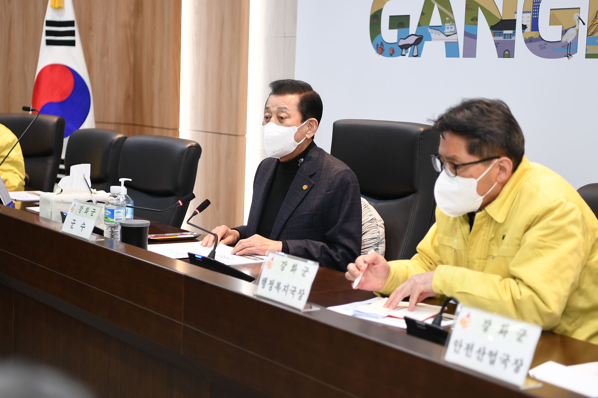 유천호 강화군수는 7일 영상회의실에서 부군수를 비롯한 국‧과장, 직속기관 및 사업소장 등이 참석한 가운데 간부회의를 개최하고 코로나19 방역상황 및 주요 지역 현안을 점검했다.