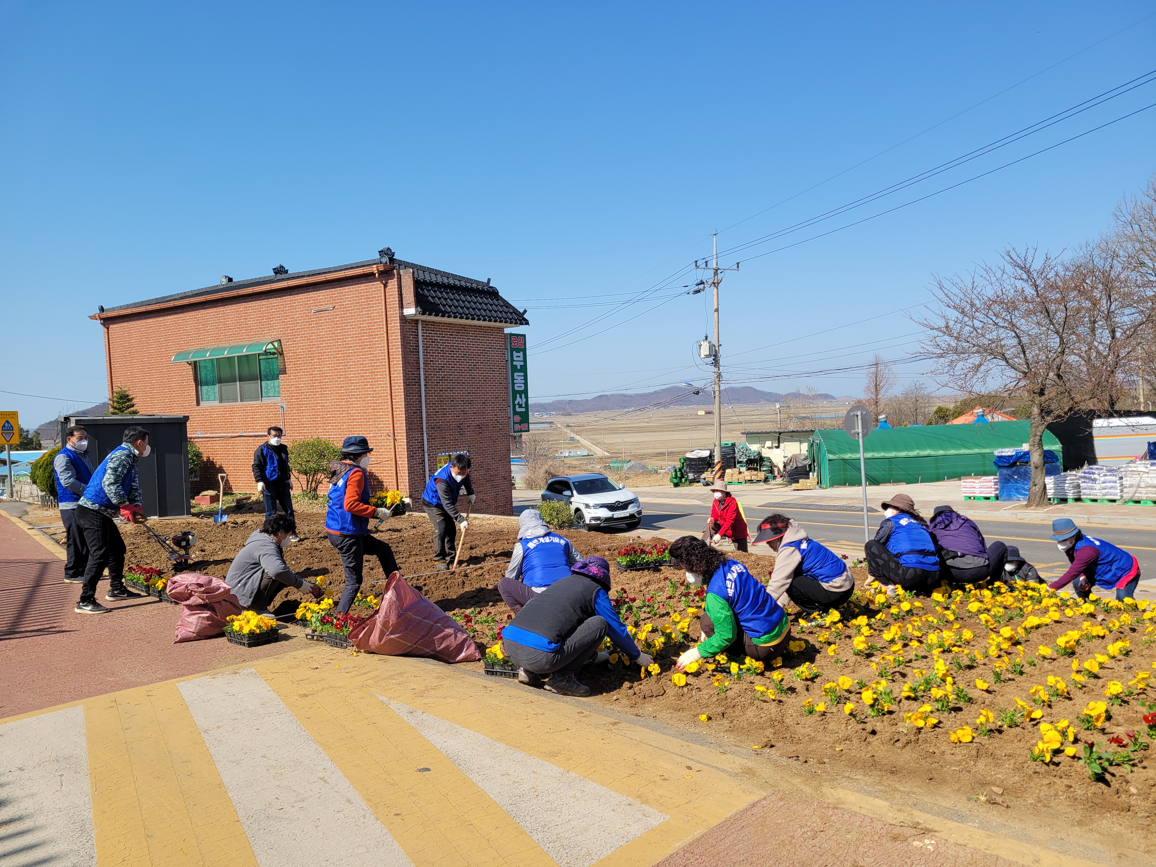 교동면 바르기살기위원회, 꽃내음 가득‘꽃길 조성’