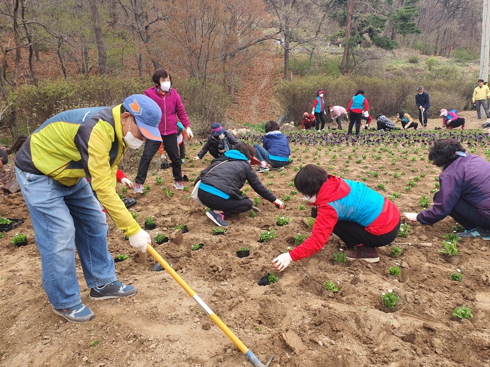 내가면 지역사회보장협의체, 외포고개 꽃 식재로 봄맞이 단장