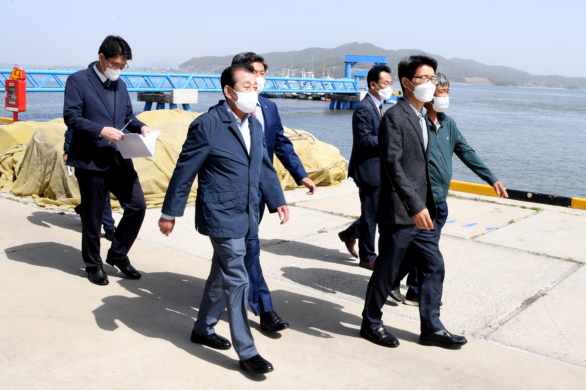 유천호 군수는 현장에서 ▲준설 및 선착장 설치 ▲물양장 부지 환경 정비(어구 수리장 포장 및 주차장 확·포장) ▲소형어선 인양기 교체(10톤형) 등 사업비 114억 원의 국비 지원을 요청했다.