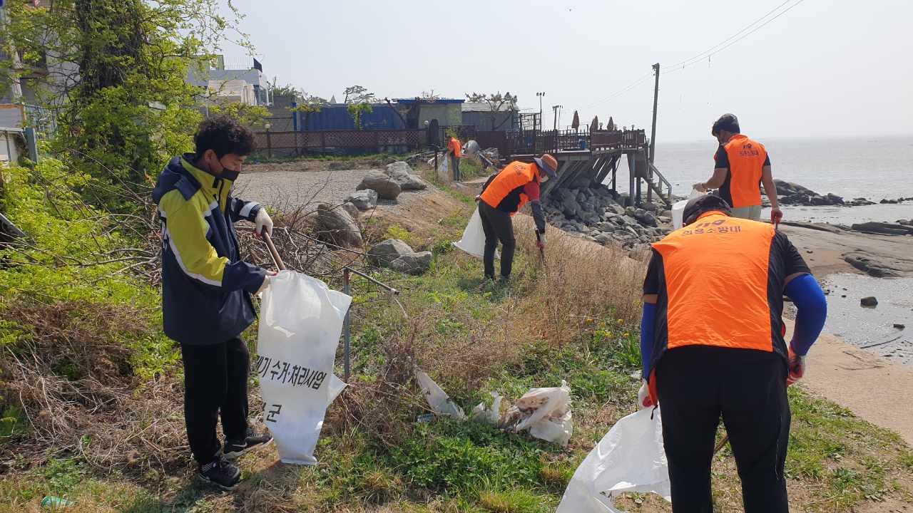 화도면 동막 의용소방대 동막해변 환경정화 실시