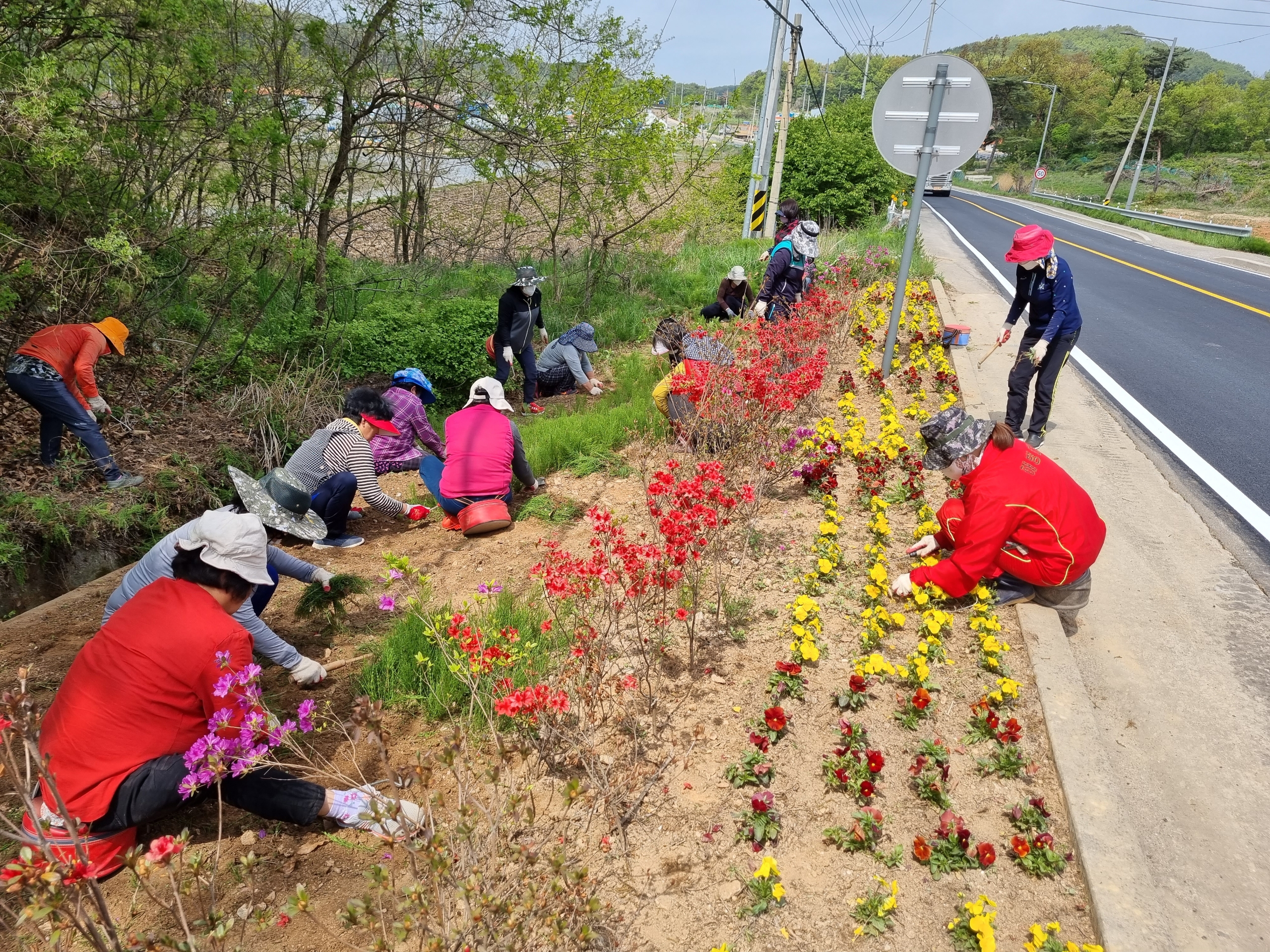 교동면 여성예비군, 관내 가로변 화단 제초작업 실시