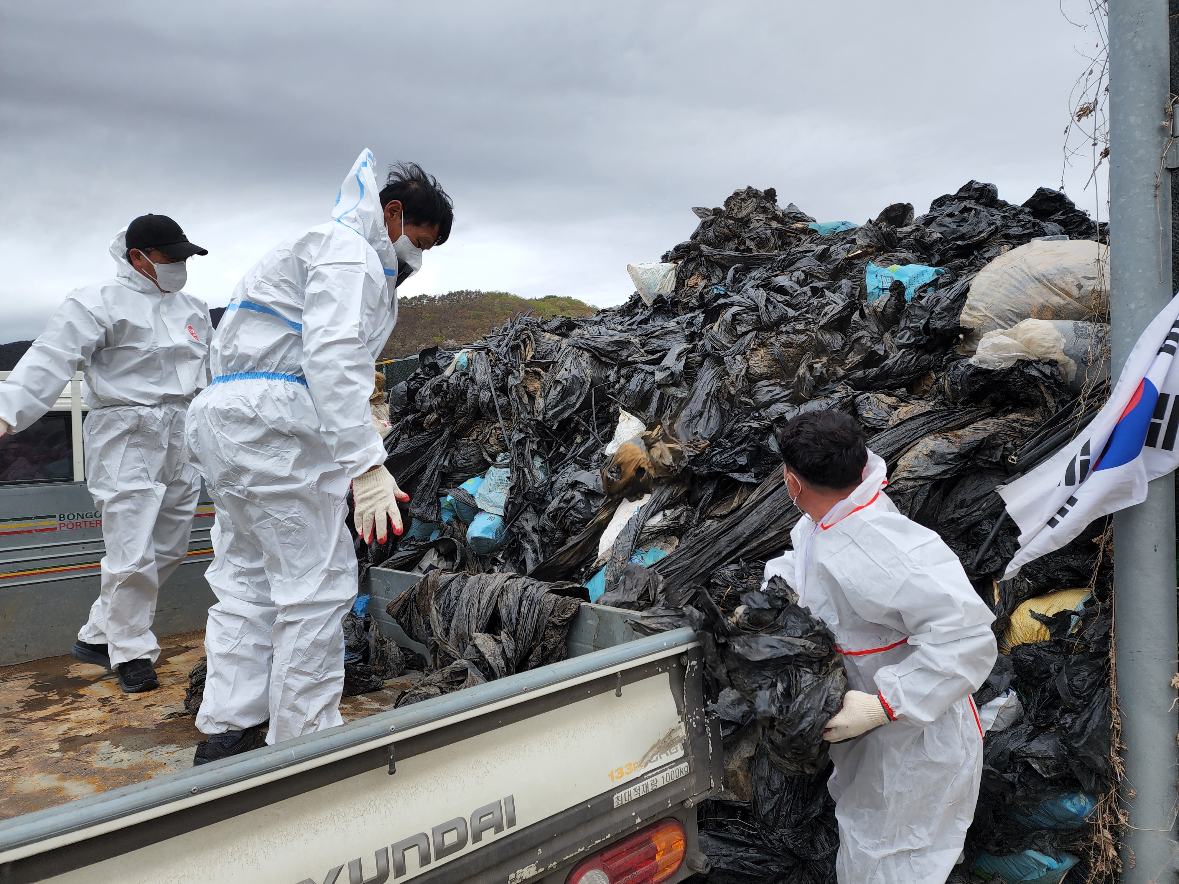 이날 이장단은 오전부터 모여 관내 도로변과 수로에 방치된 영농폐비닐 등 각종 영농폐기물을 집중 수거했다.