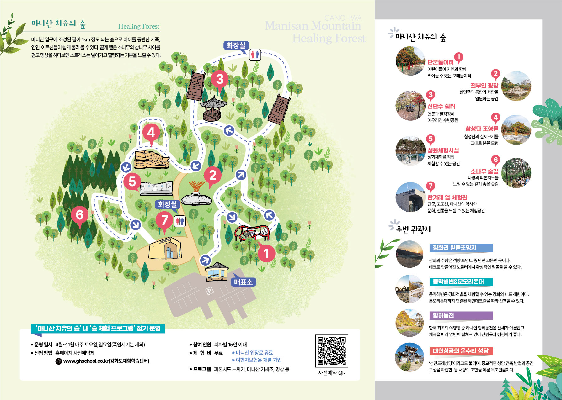 한편, ‘마니산 치유의 숲’은 인천광역시가 선정한 웰니스 관광지로 지난해에 이어 2년 연속 선정됐다. 웰니스 관광지는 육체, 심리, 정신적 활동을 통해 건강한 삶과 웰빙을 추구할 수 있는 여행지이다.