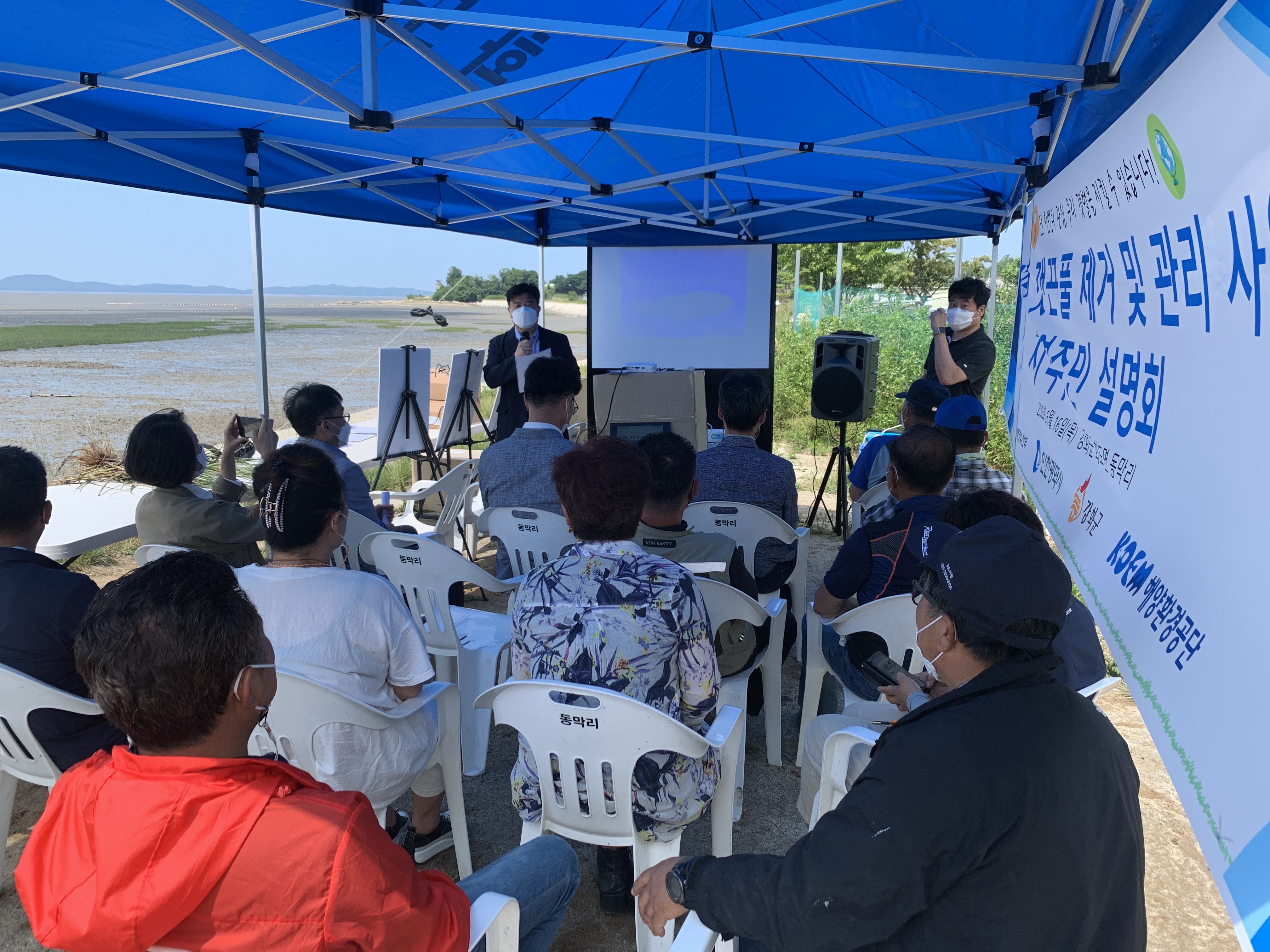 이날 군 해양수산과, 인천시, 해양환경공단 관계자가 참석한 가운데 화도면 동막해변에서 ‘갯끈풀 제거 및 관리사업’ 주민설명회를 개최했다. 갯끈풀 수매사업을 비롯해 갯끈풀 식별 및 신고 방법 등을 설명해 주민의 사업 참여에 대한 관심도를 높였다.