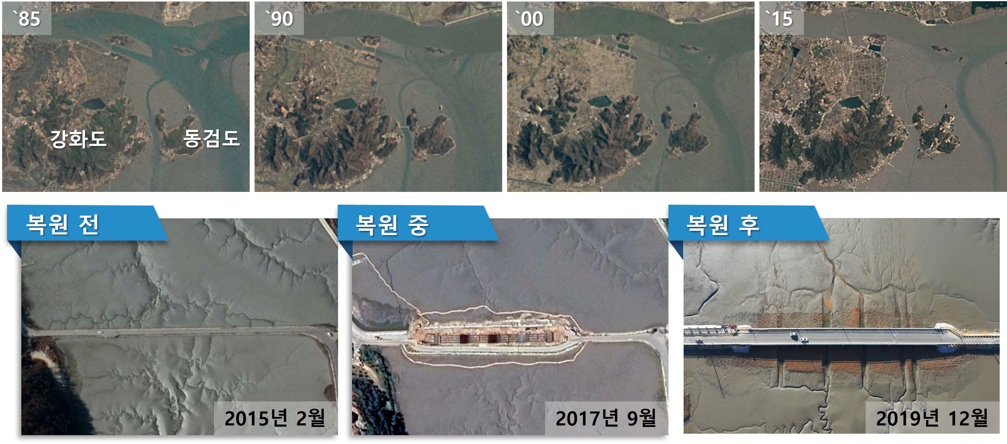 동검도는 지난 1985년 강화도 본도와 연결되는 연육도로가 제방 형태로 건설돼 해수가 유통되지 않았다. 이후 침·퇴적에 따른 해수유통 저하, 바다 생물의 종 다양성 감소 등으로 인한 갯벌 생태계 건강성이 악화되고, 어업 피해가 발생했다. 이에 군은 지난 2017년 사업비 50억 원을 투입해 기존 제방형 연육도로를 해수유통형 교량으로 설치하고 동검도 갯벌생태계 복원을 위한 사후 모니터링을 실시했다.