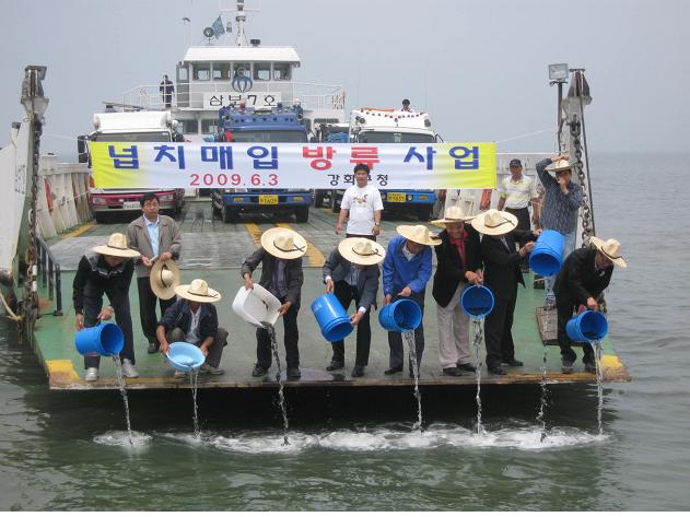 안덕수 강화군수, 시 의원,군 의원 및 수산관계자, 경인북부수협, 지역 어촌계 및 어업인 등 30여명이 참여한 가운데 어린넙치(전장 6cm 이상) 29만마리와를 방류했으며 지난 5월 29일에는 어린꽃게(전갑폭1㎝내외) 652만 마리를 방류했다.