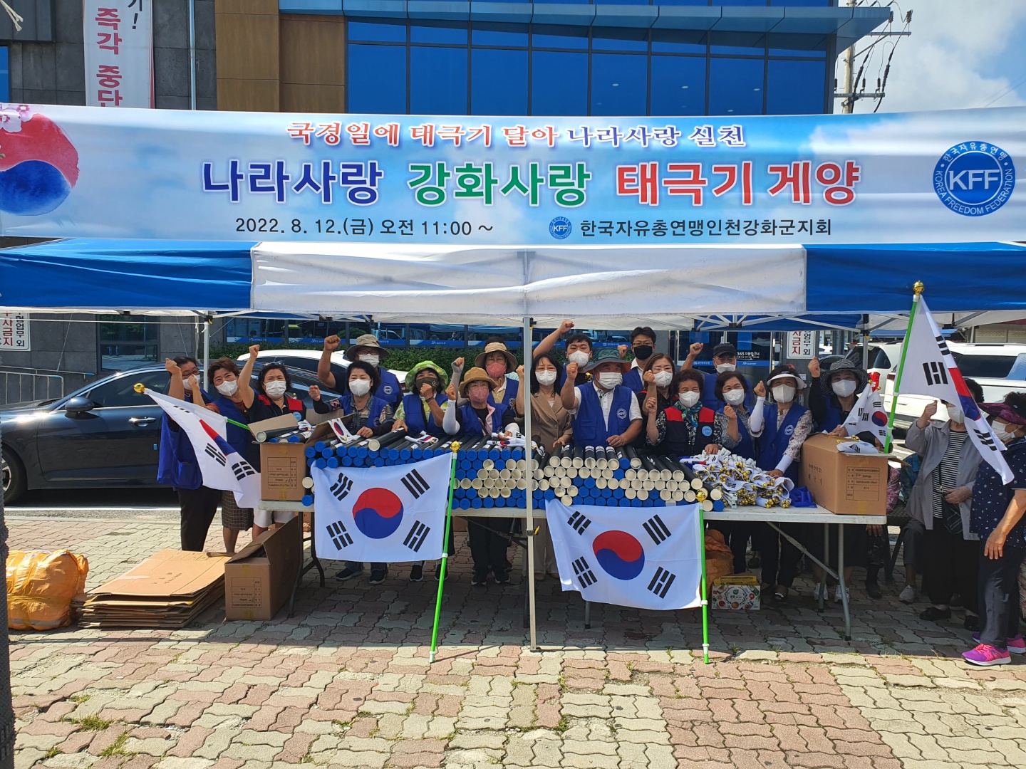 한국자유총연맹 강화군지회(회장 박봉식)는 12일 제77주년 광복절을 맞아 강화읍 수협 앞에서 “나라사랑 태극기 나눔 및 달기운동”을 전개했다.