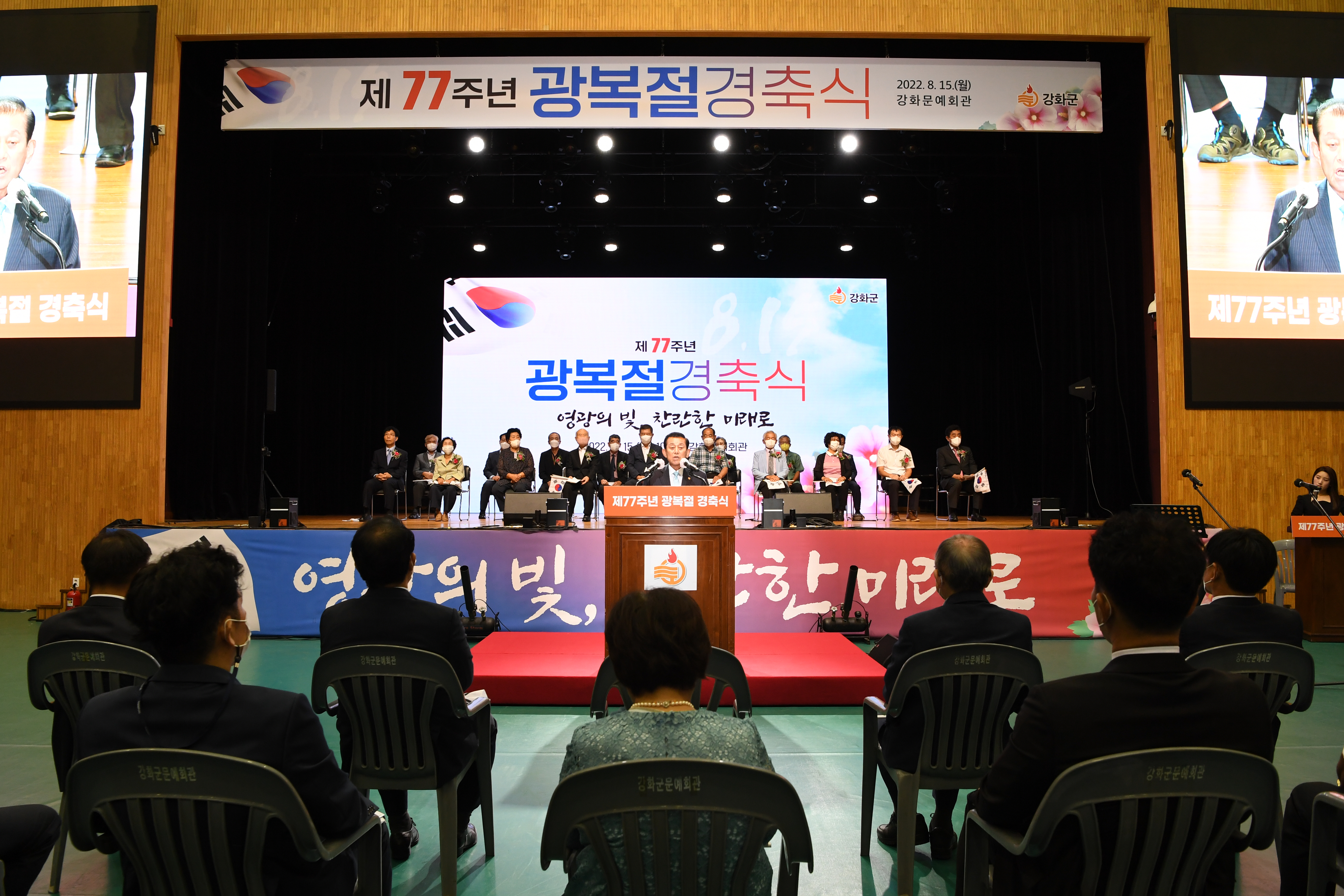 강화군(군수 유천호)은 지난 15일 국권회복을 위해 헌신한 순국선열과 애국지사들의 독립정신을 계승하는 “제77주년 광복절 경축행사”를 강화문예회관에서 개최했다고 밝혔다.