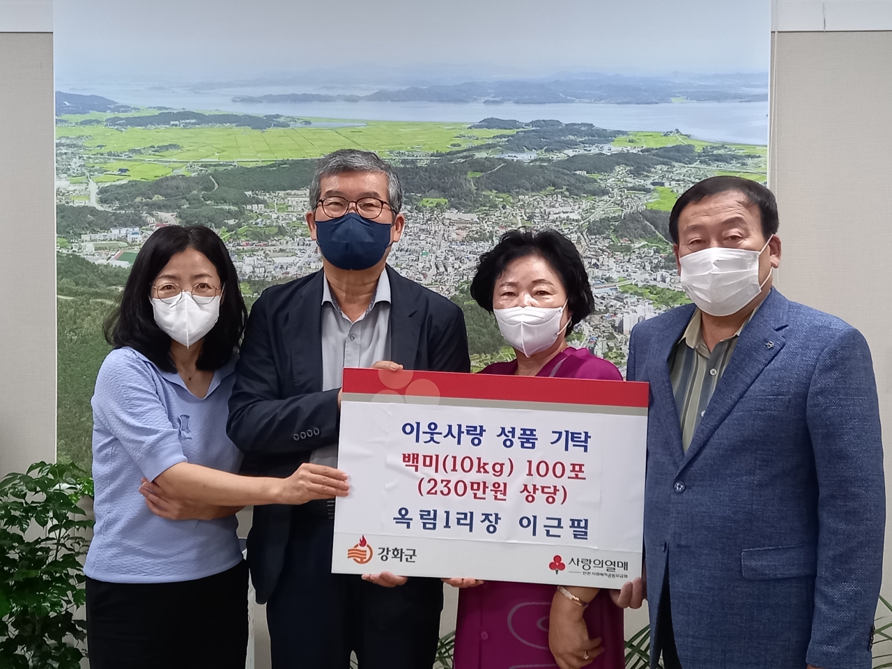 강화군 강화읍(읍장 구자광)은 옥림1리 이근필 이장은 지난 29일 관내 불우이웃 등에게 전해 달라며 230만원 상당의 백미(10kg) 100포를 강화읍사무소에 전달했다고 밝혔다.