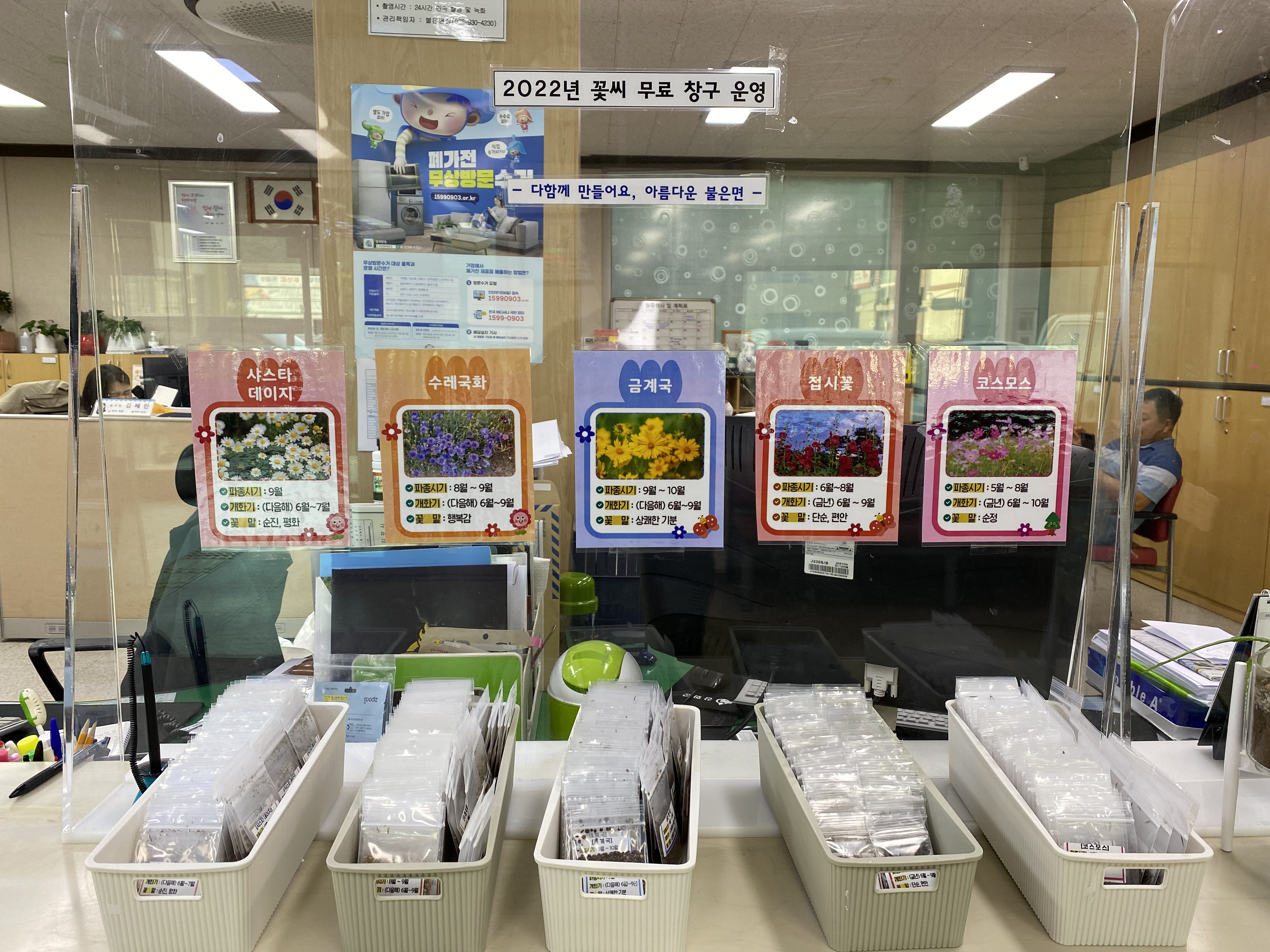 또한 꽃씨 나눔 창구에는 꽃을 잘 모르는 사람도 아름다운 화단을 만들 수 있도록 5종의 파종시기와 개화기, 꽃말을 표시해놓았다.