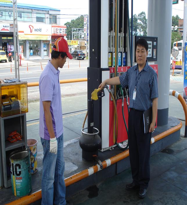 (사진은 담당공무원이 주유소를 방문해 미터기를 확인하고 있다)